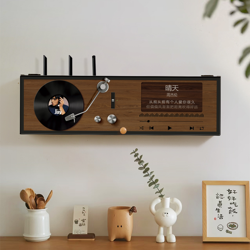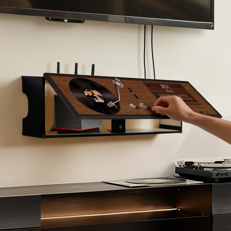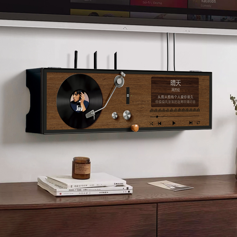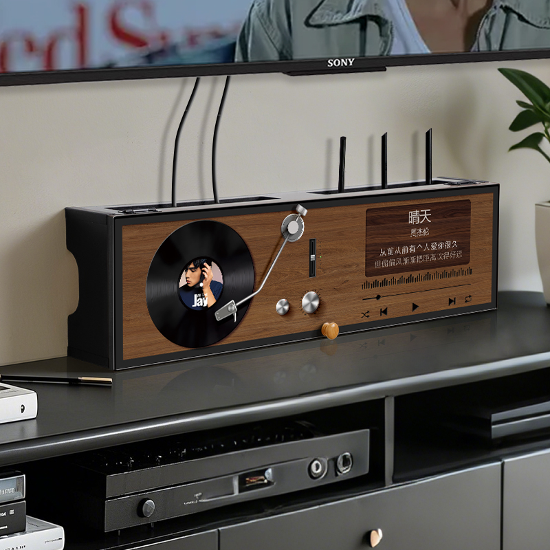 复古风唱片无线路由器收纳盒wifi光猫放置架机顶盒线路遮挡置物架