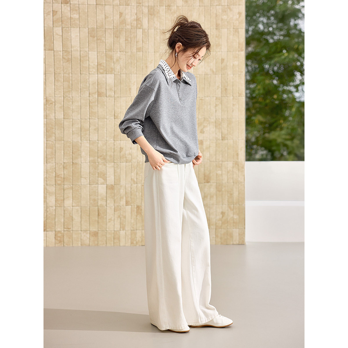 沫晗依美撞色拼接双层领上衣