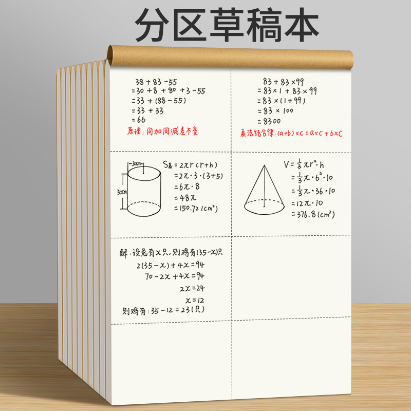 10本分区草稿本小学生用草稿纸数学演草本验算打草考研专用高中初中生大学生笔记本子可撕空白加厚白纸批发