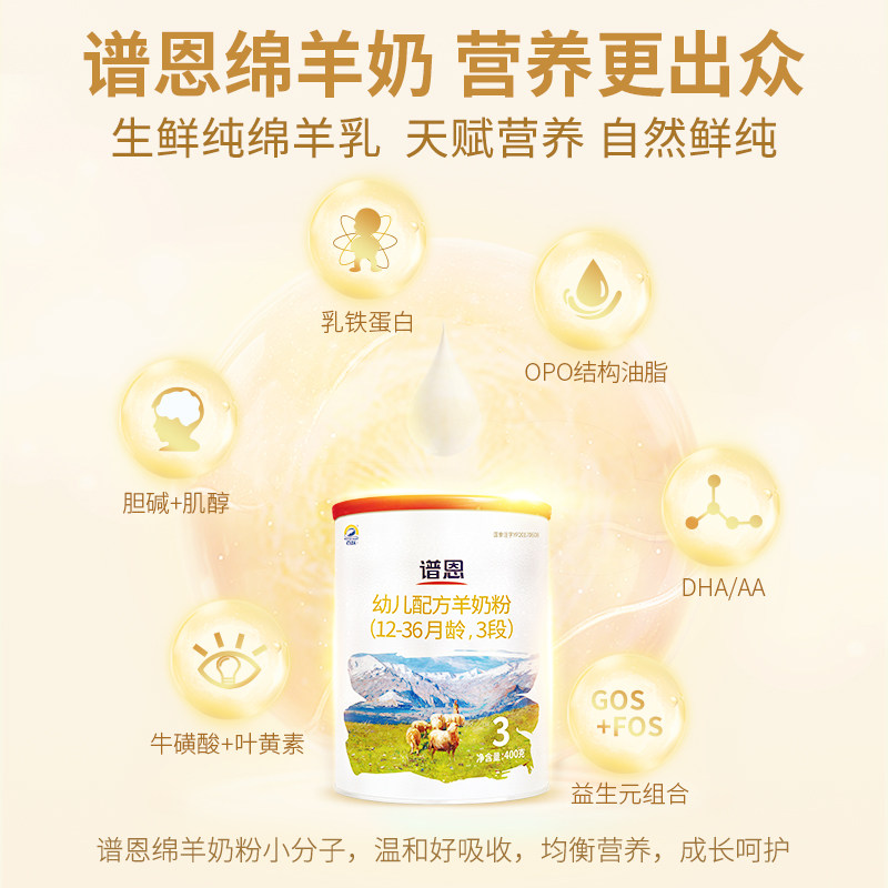 【百跃官方】谱恩专注好吸收绵羊奶配方婴幼儿绵羊奶粉3段400g/罐