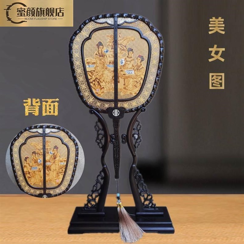 天然红木工艺品插屏 黑檀 檀香扇子 仿古木雕装饰摆件