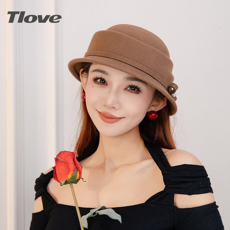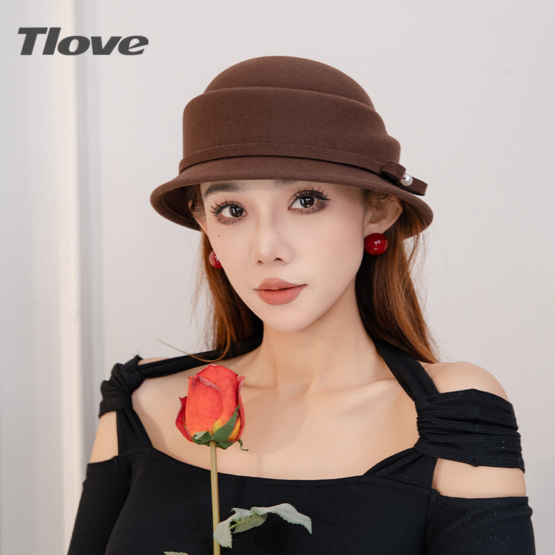 9550tlove羊毛帽子女士秋冬天新款优雅法式小众礼帽气质潮流盆帽