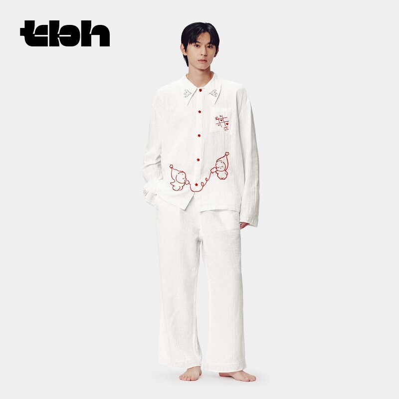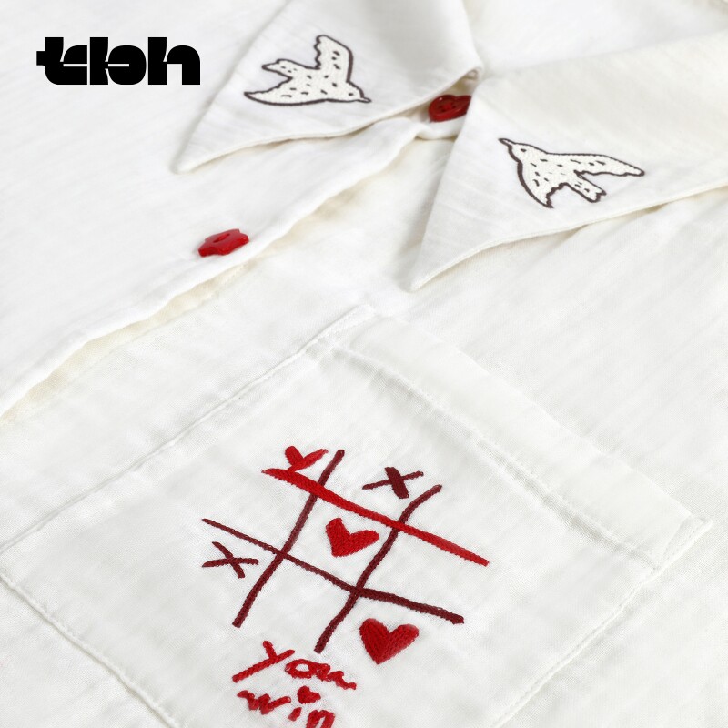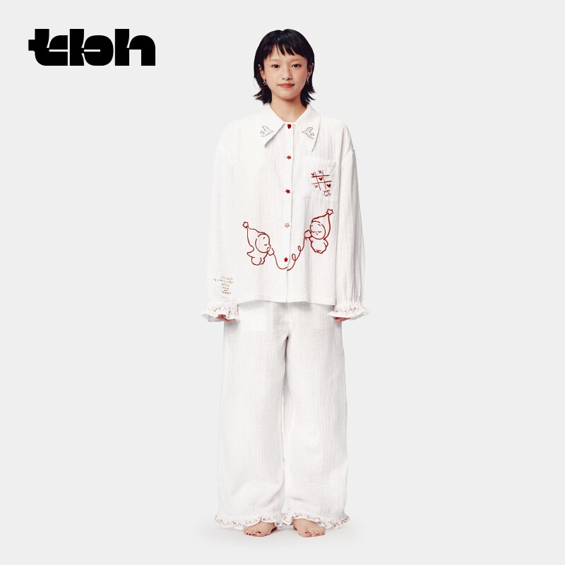tbh野兽派家居星星人全棉双层纱刺绣家居服长款套装可外穿睡衣女