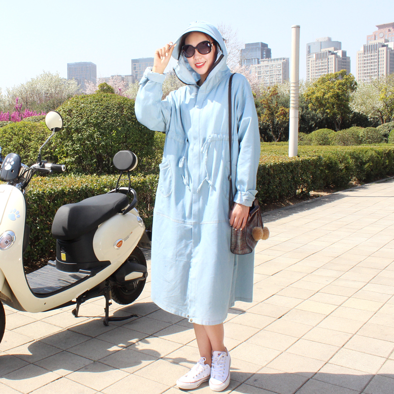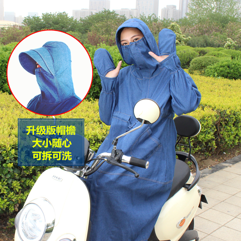 电动摩托车防晒衣服全身长款牛仔连帽遮脸手套款宽松大码男女夏季