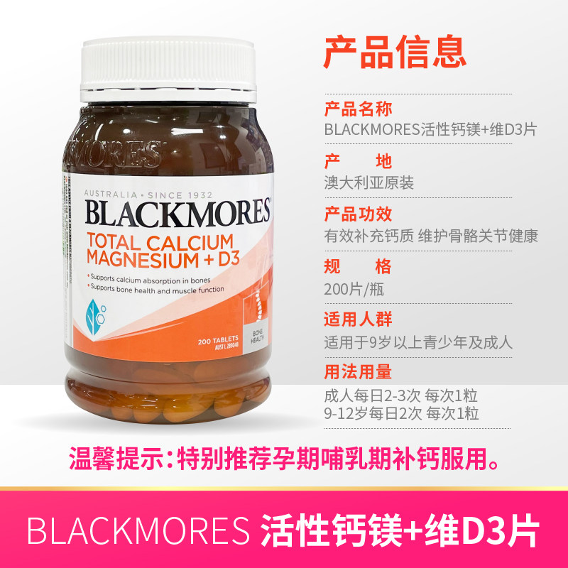 澳洲直邮Blackmores澳佳宝钙镁片维生素d成人补钙中老年孕妇200片