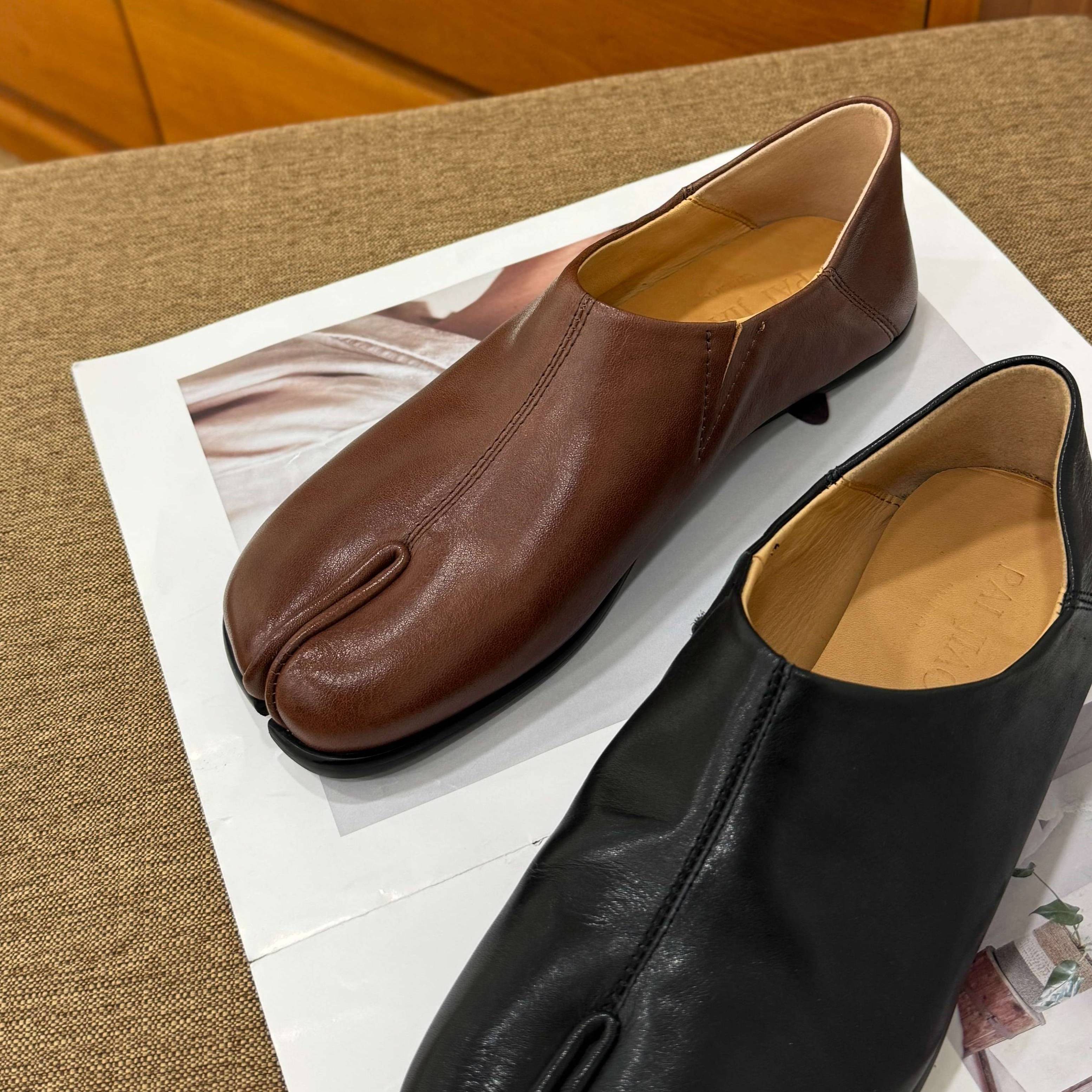 英伦风套脚复古牛皮分趾鞋平底猪蹄单鞋女一脚蹬懒人鞋8099-1