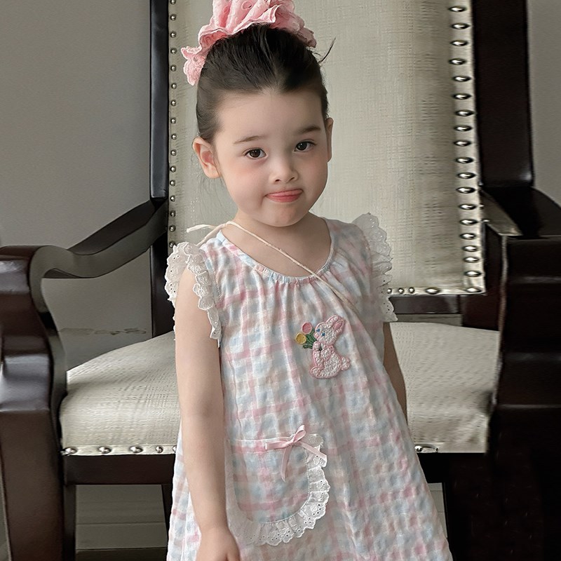 女童格子背心裙夏装2025新款小童清爽纯棉连衣裙女宝宝洋气公主裙