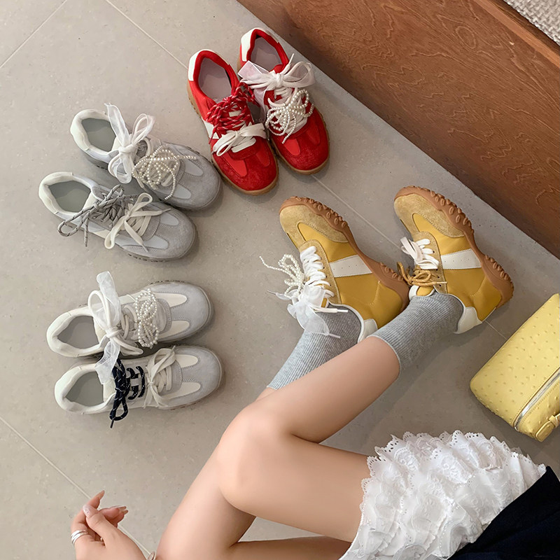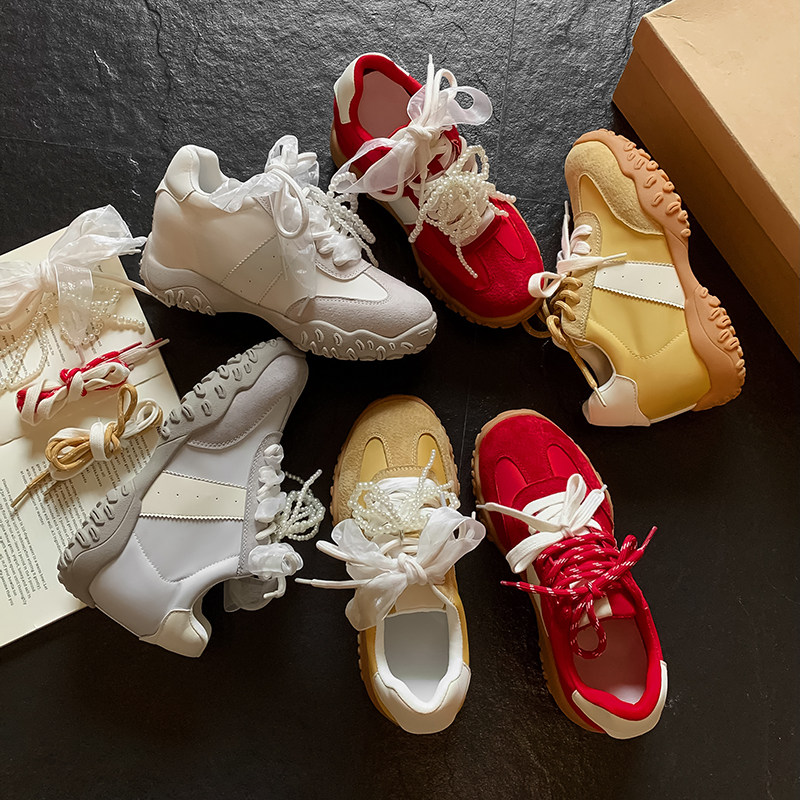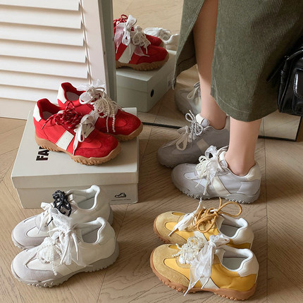 【苏茵茵】7cm版~内增高丝光月牙珍珠蕾丝鞋带运动休闲鞋女德训鞋