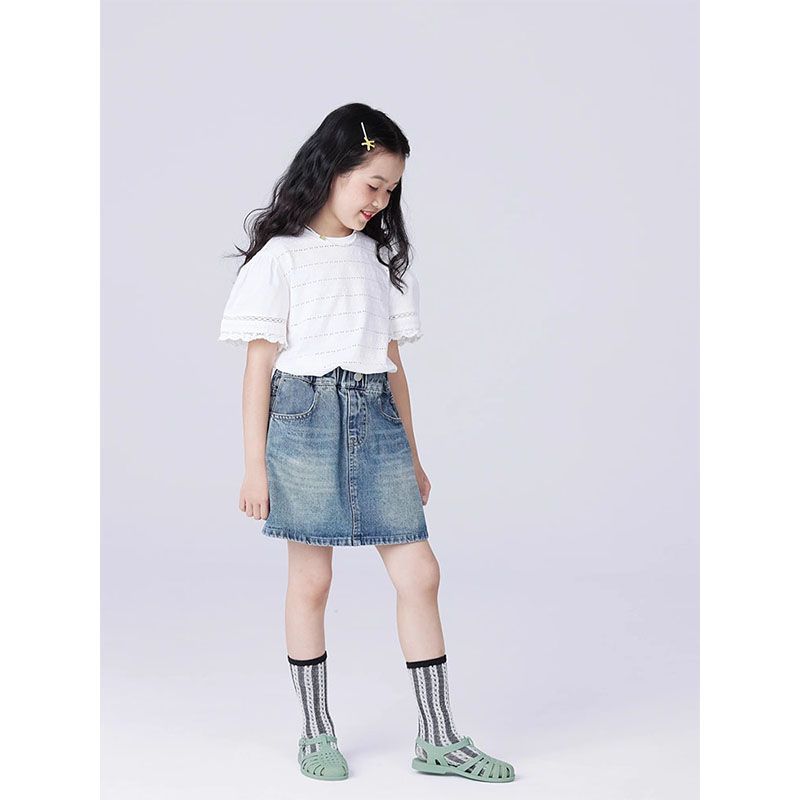 女童时尚水洗磨白牛仔裙中大童夏季轻薄时髦休闲半身裙儿童装短裙