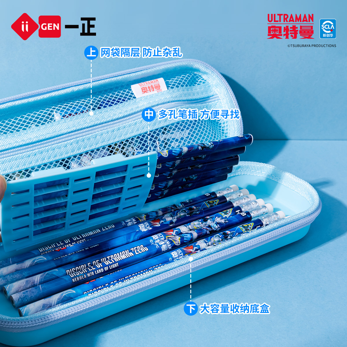 iiGEN一正学生创意文具正版英雄之光布艺PP笔盒 儿童炫酷奥特曼文具盒大容量男生铅笔盒PP笔盒耐摔耐脏铅笔盒