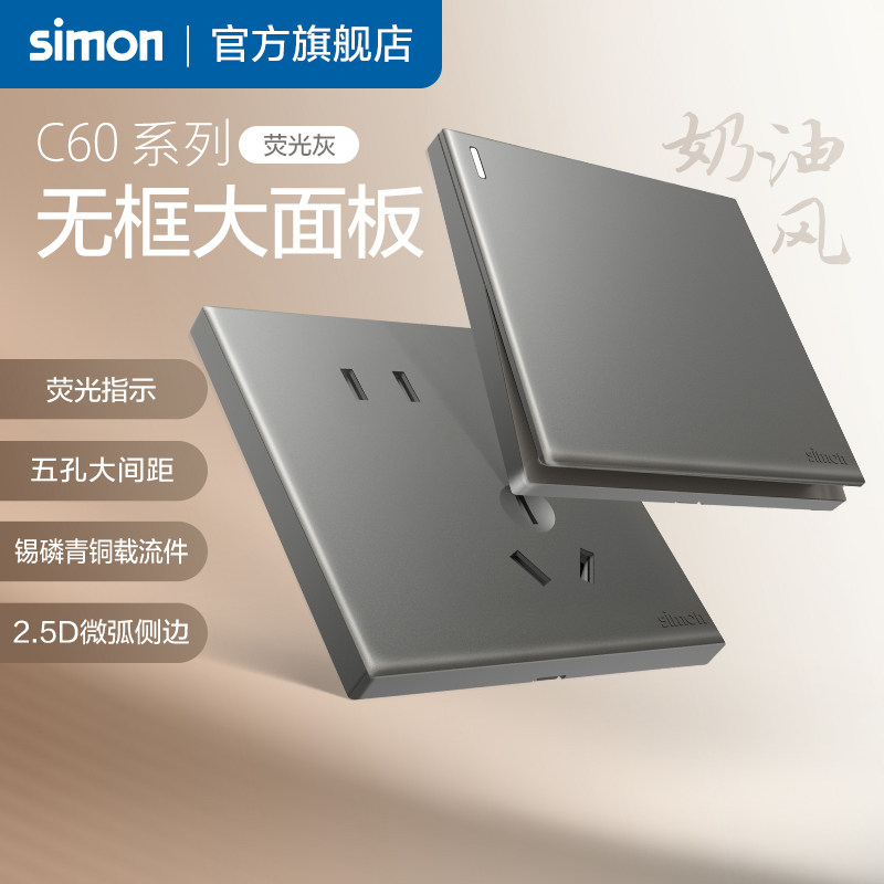 西蒙simon开关插座C60荧光灰一开五孔USB多孔家用86型暗装旗舰店