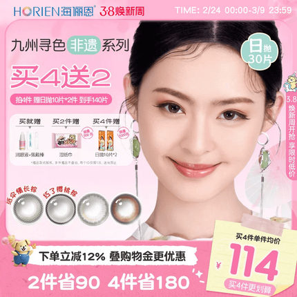 【买4赠2】海俪恩九州非遗系列美瞳日抛30片彩色隐形眼镜纸伞情长