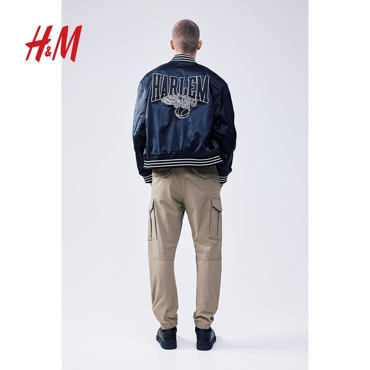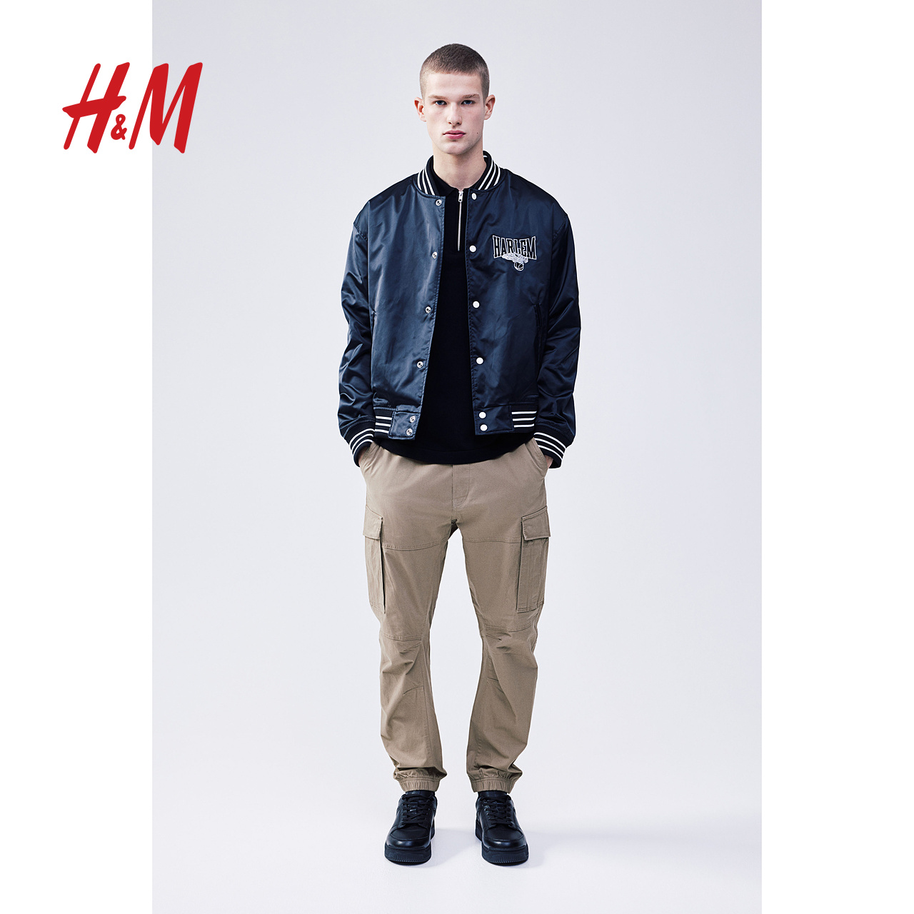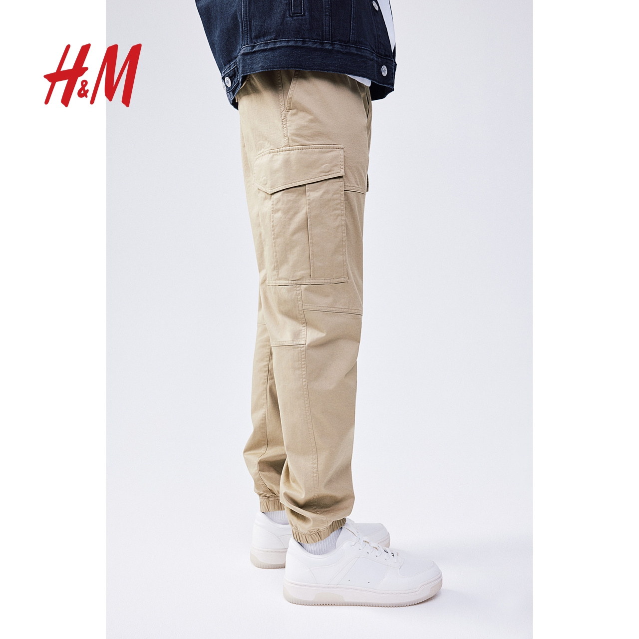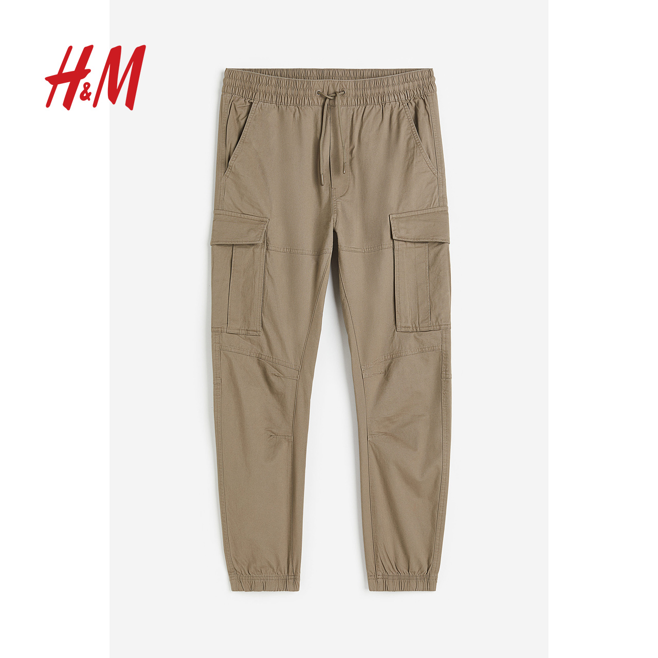 HM男装休闲裤秋季松紧腰斜侧袋工装裤束脚长裤1002227