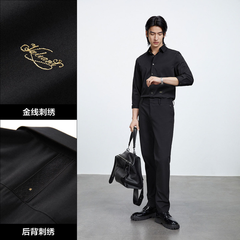 太平鸟男装 夏季长袖衬衫男士休闲时尚上衣