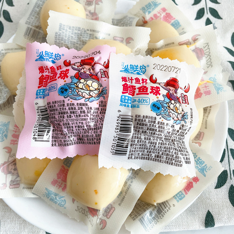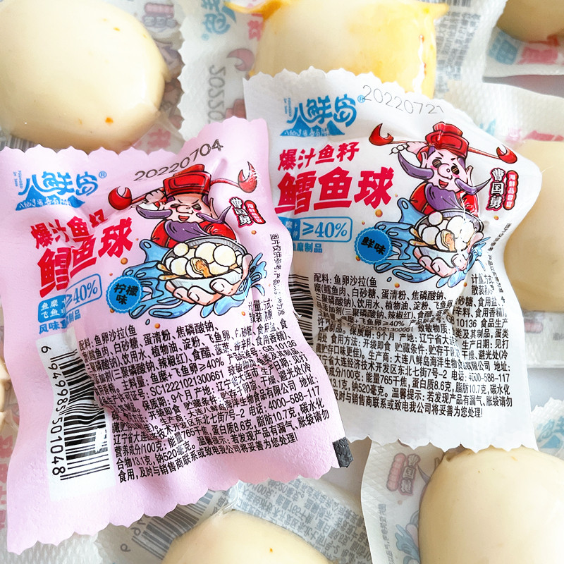 大连特产八鲜岛500g爆汁鱼籽鳕鱼球柠檬鲜味鱼丸开袋即食海鲜小吃