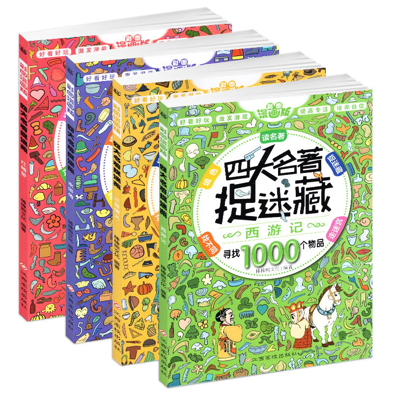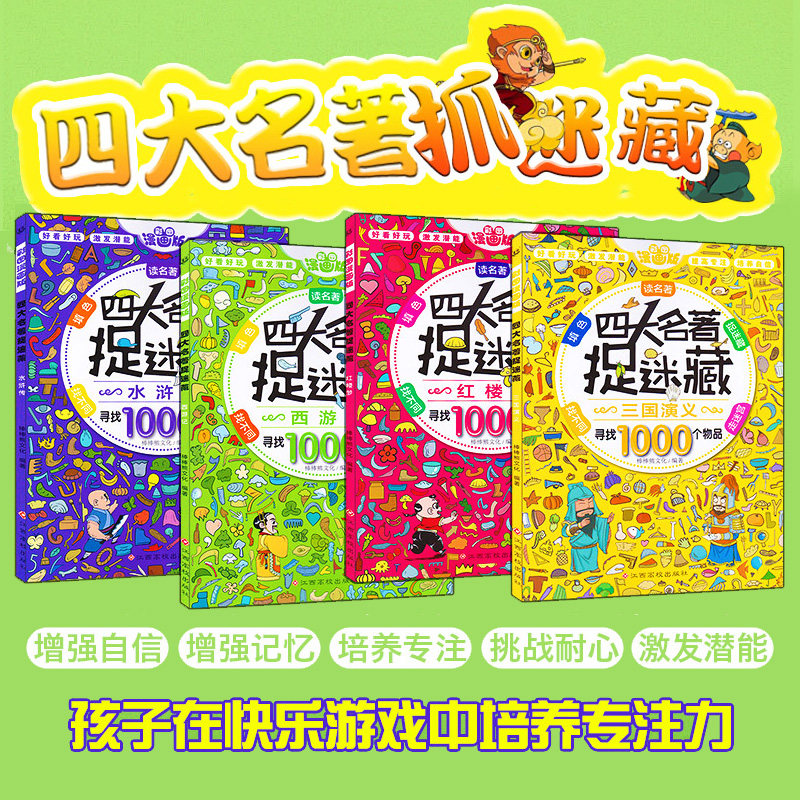 四大名著捉迷藏全套4册寻找1000个物品小学生专注力训练书找不同隐藏的图画走迷宫大发现儿童益智游戏书籍读名著捉迷藏书新疆包邮