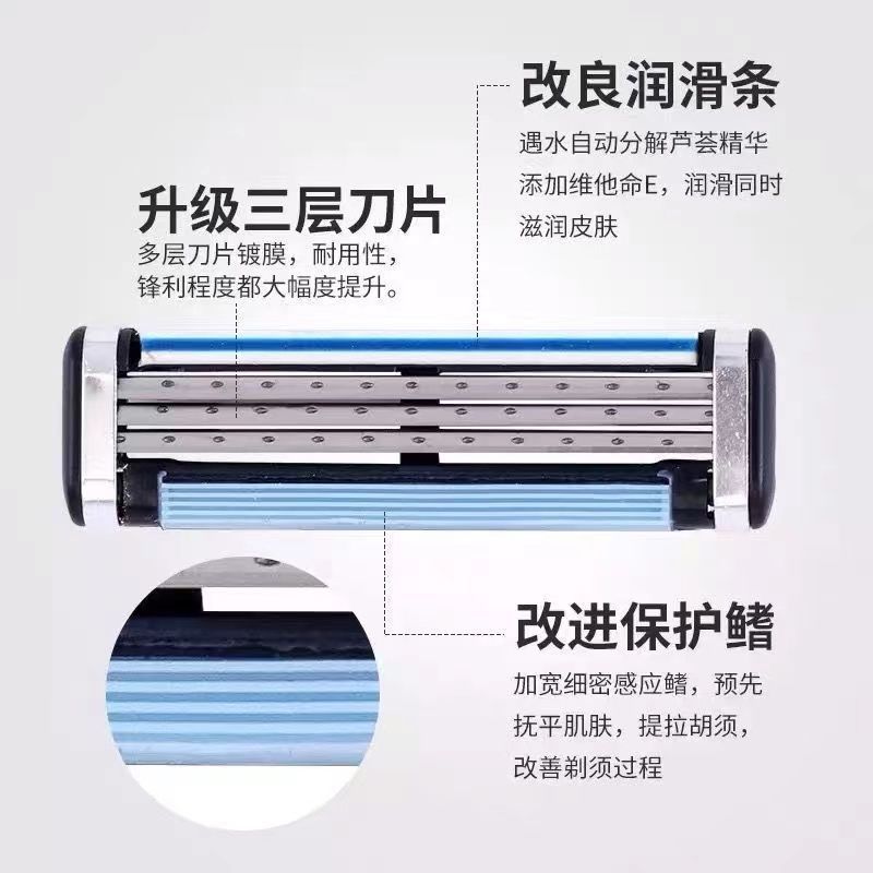 锋三速3刀片三层刀头手动剃须刮胡刀通用吉列老式剃胡刀男士胡子