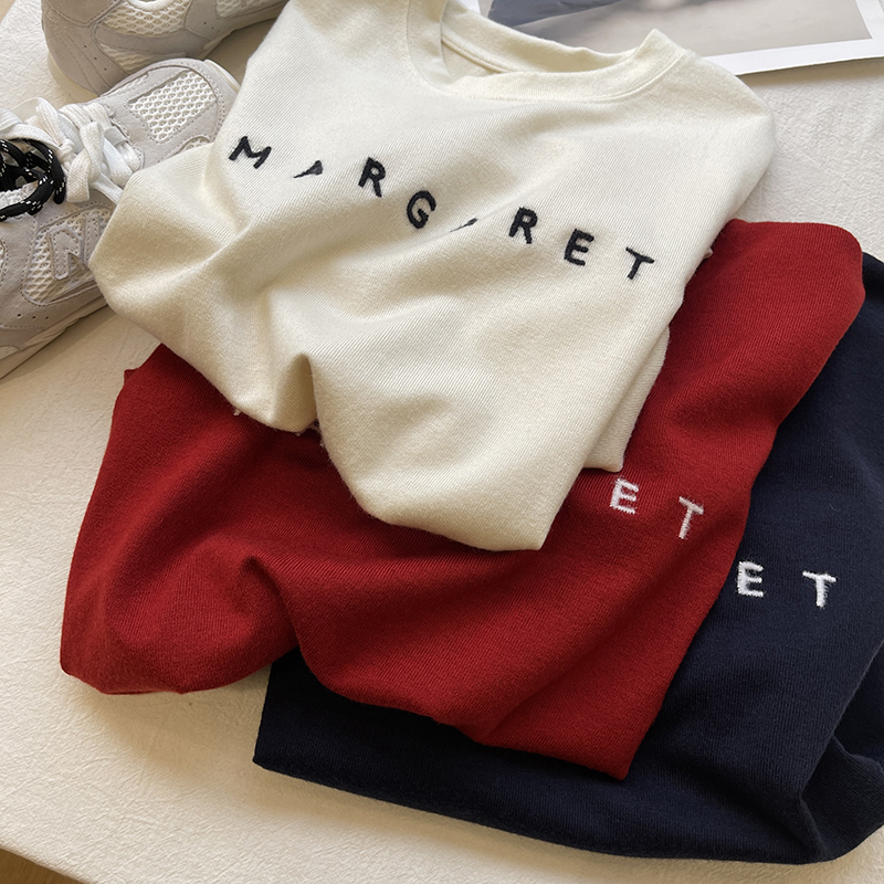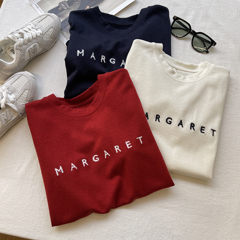 磨毛立体感字母刺绣短袖T恤女2025秋季新款韩系宽松圆领打底上衣