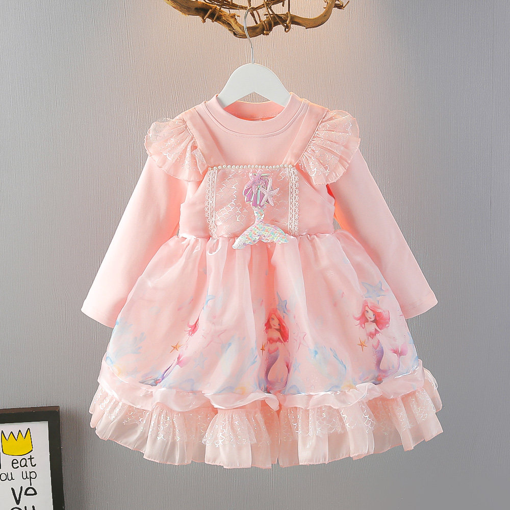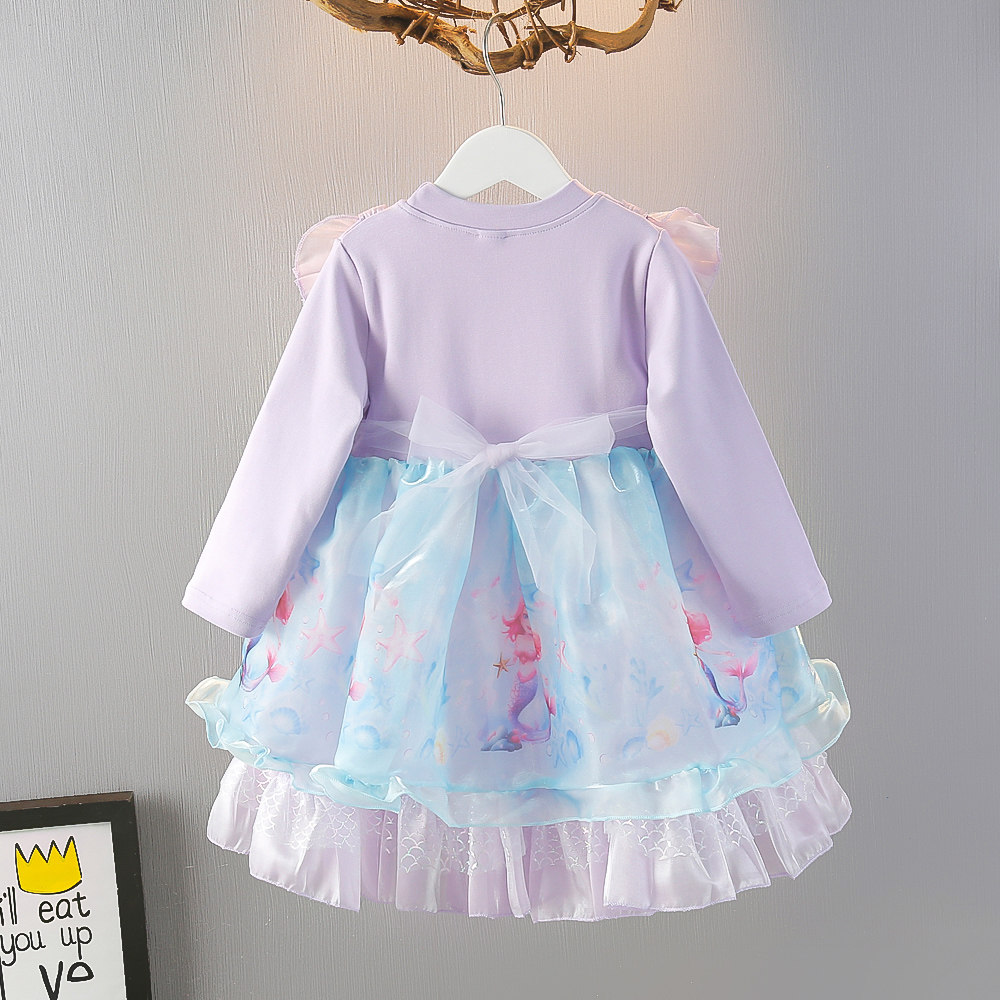 女童秋季长袖连衣裙2024新款宝宝洋气美人鱼公主裙人鱼姬纱裙礼服