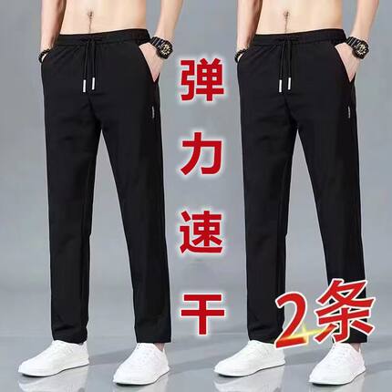 裤子男弹力速干运动裤夏季薄款宽松透气冰丝裤男士大码直筒休闲裤