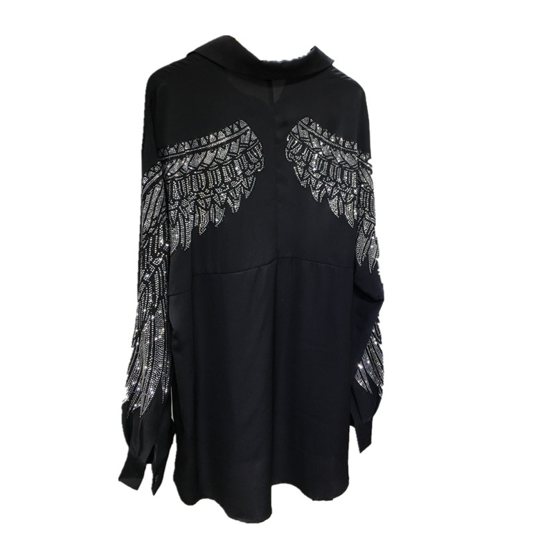 欧货重工烫衬衫女轻奢大翅膀丝滑宽松大版中长款开衫显瘦衬衣防晒
