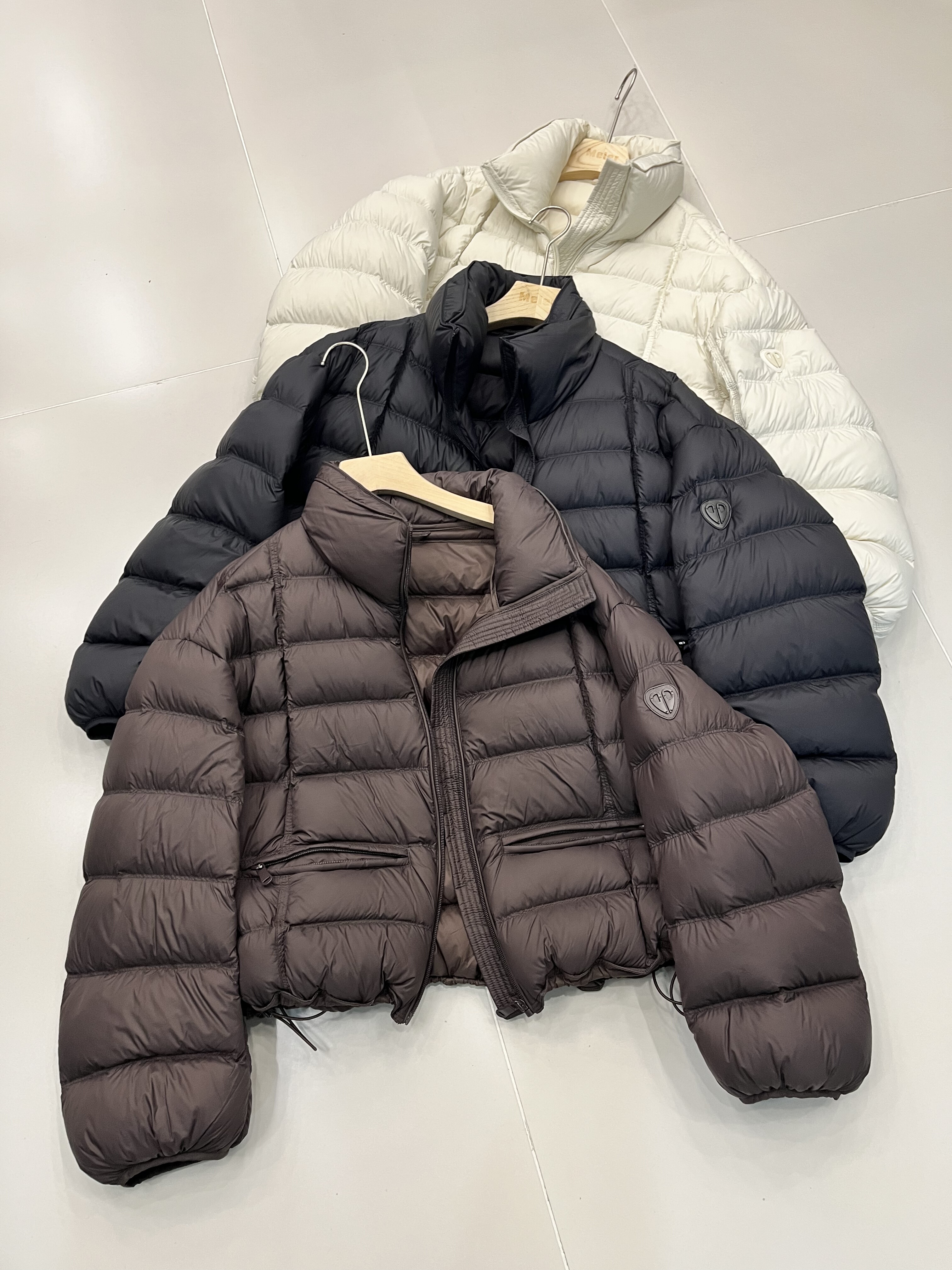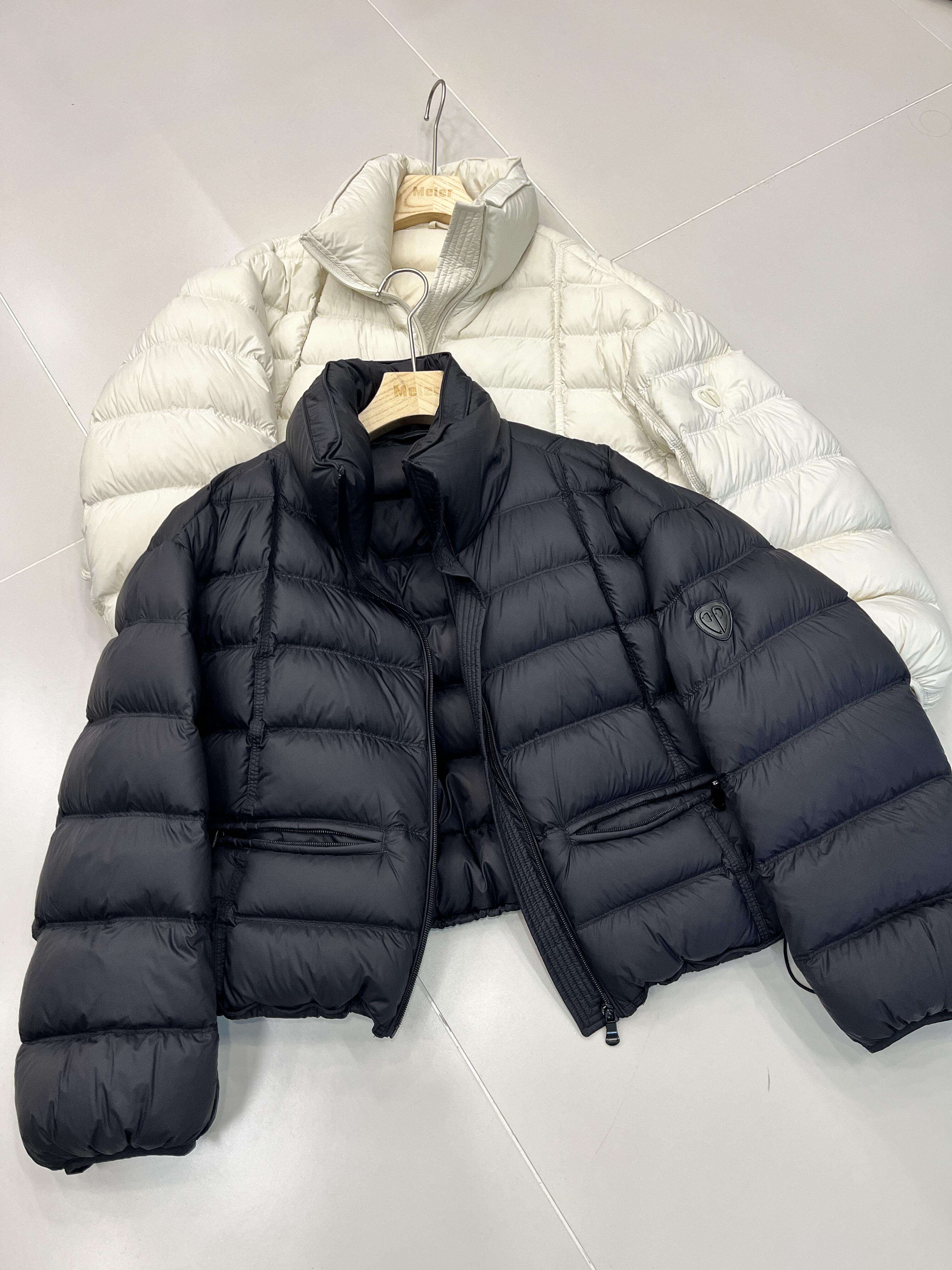欧洲站欧货2025新款冬季90白鹅绒羽绒服女短款立领加厚袖标外套