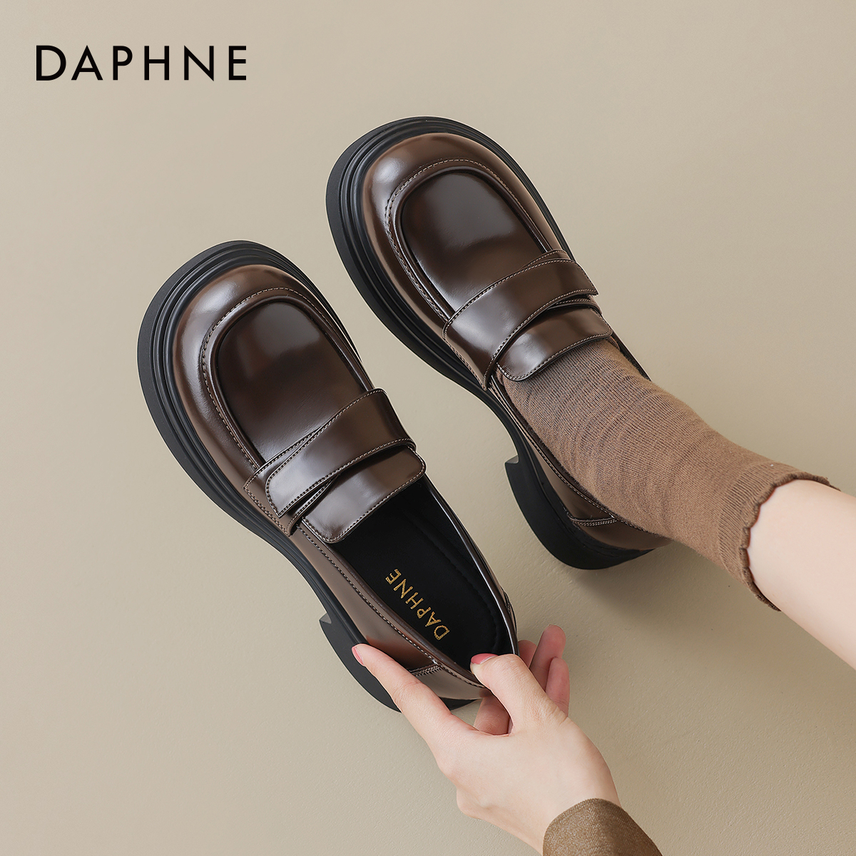 达芙妮棕色厚底乐福鞋女2025新款英伦风jk小皮鞋女款加绒单鞋女鞋