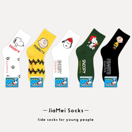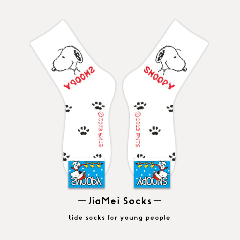史努比保暖女款卡通珊瑚绒中筒袜