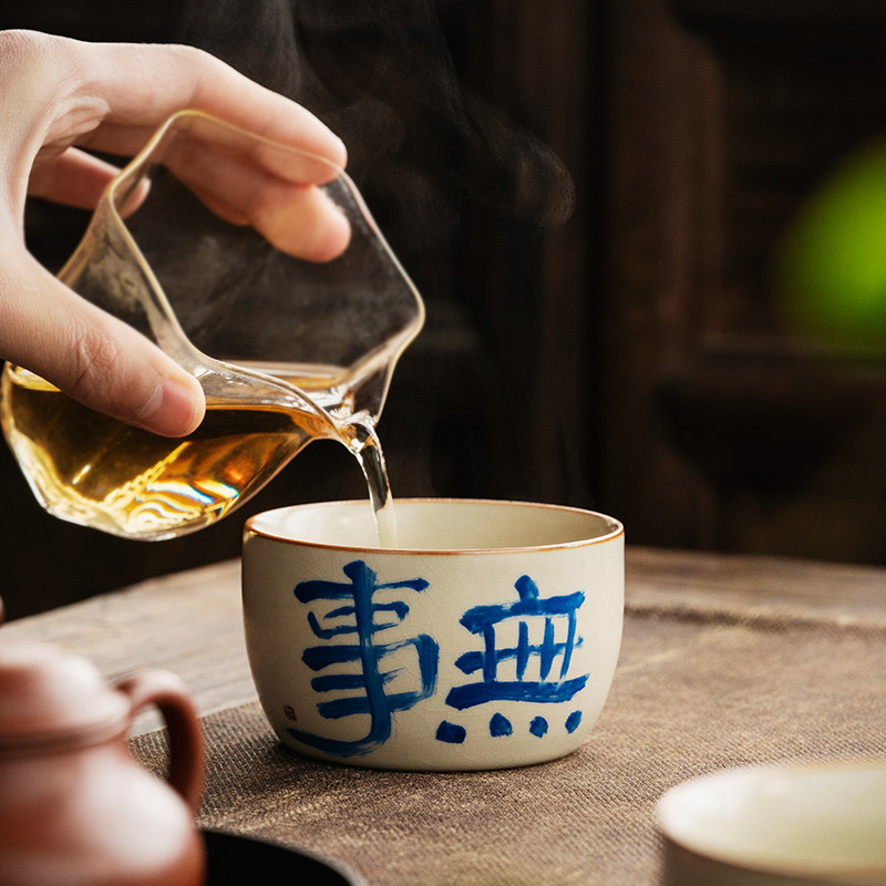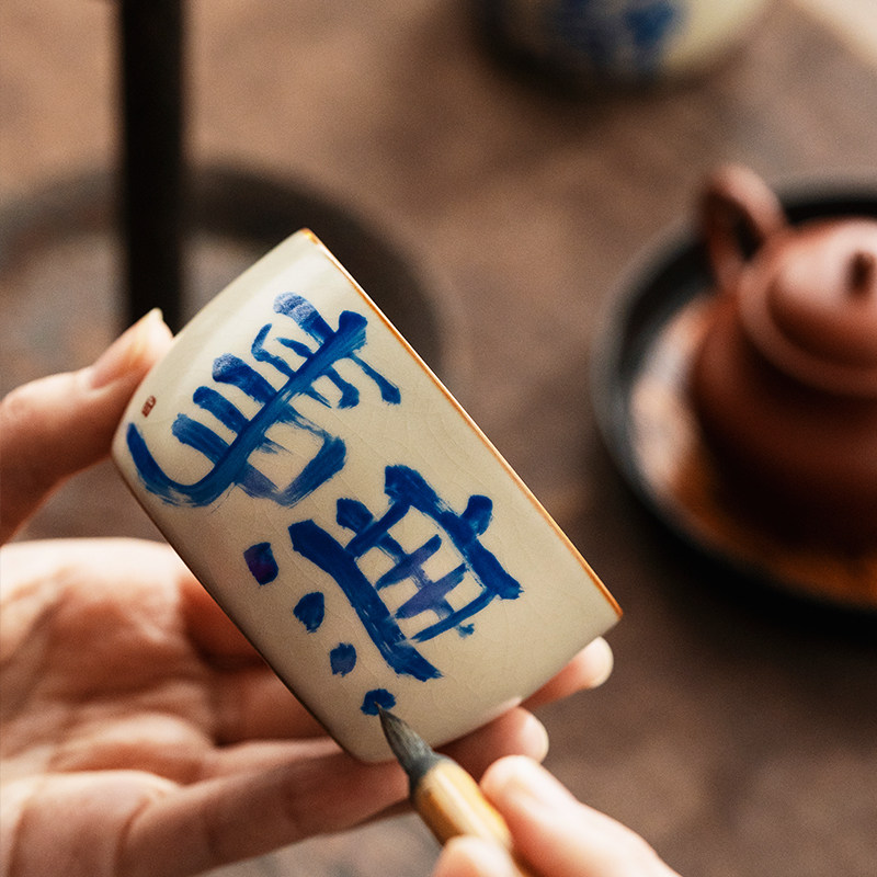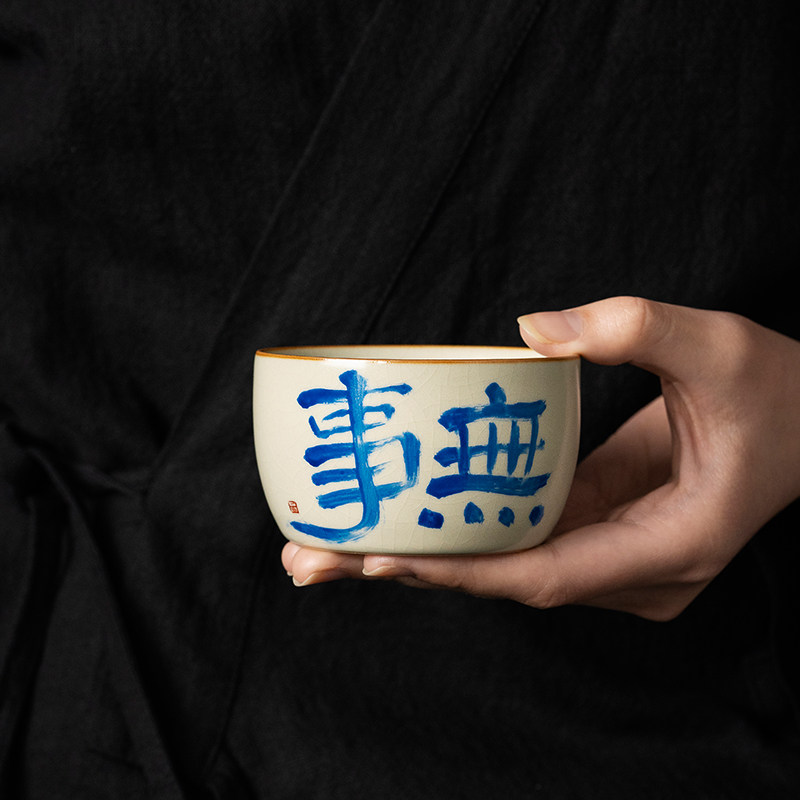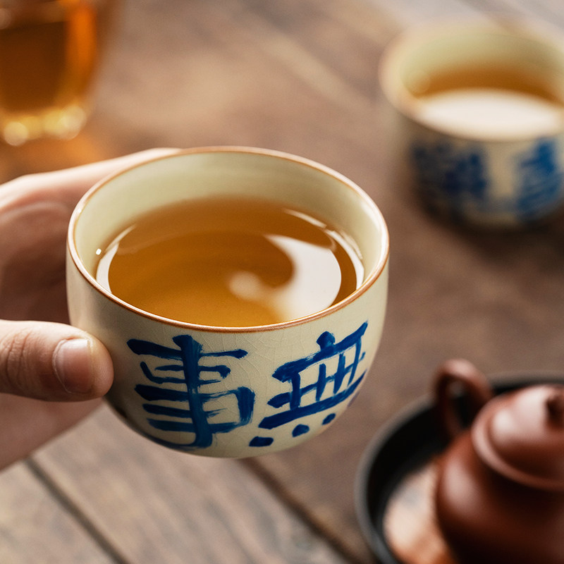 复古汝窑陶瓷中式手写单杯品茗杯