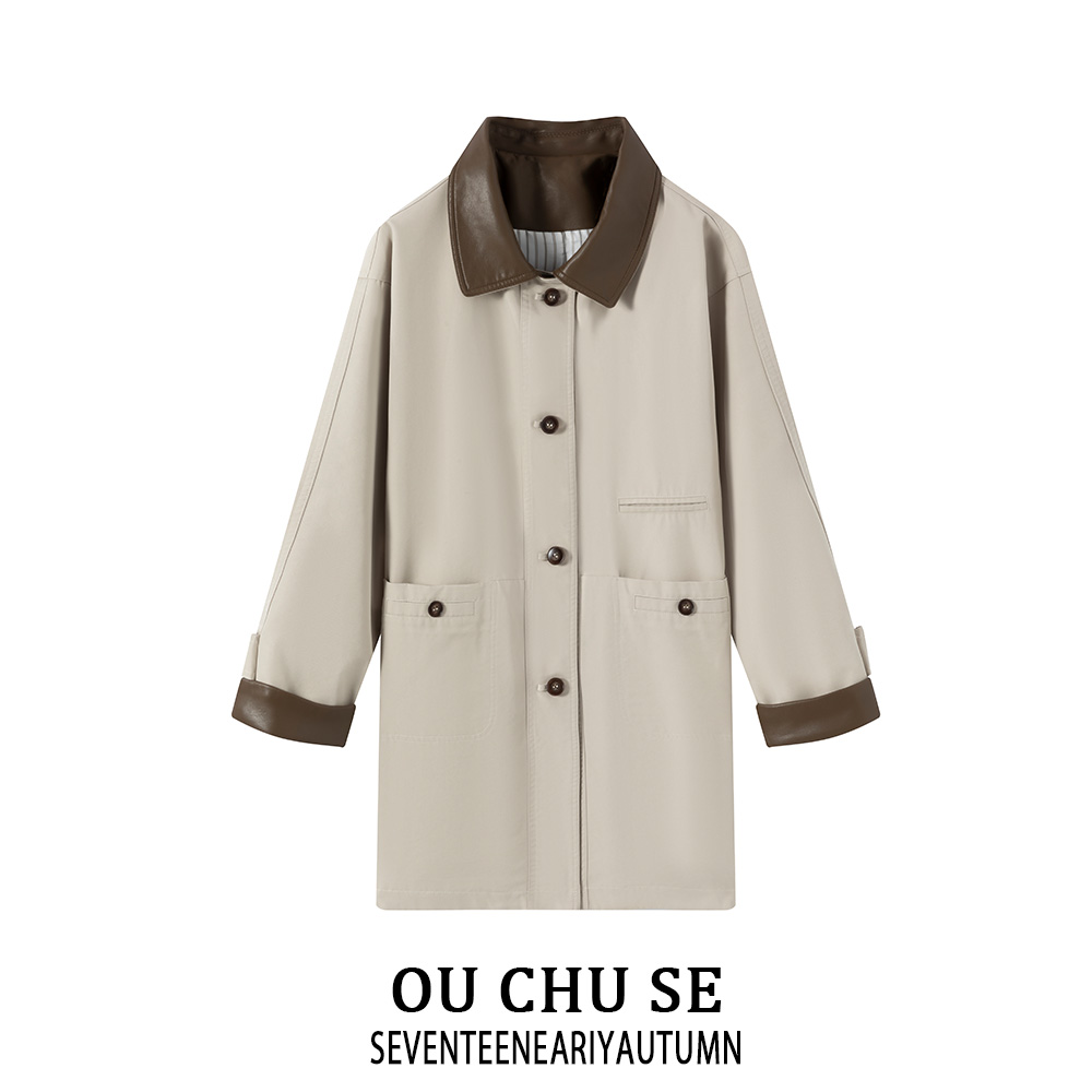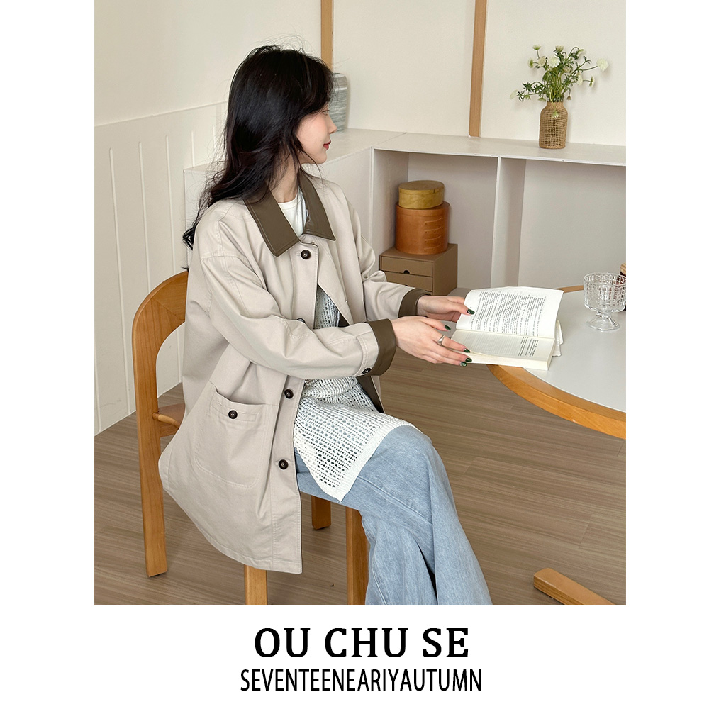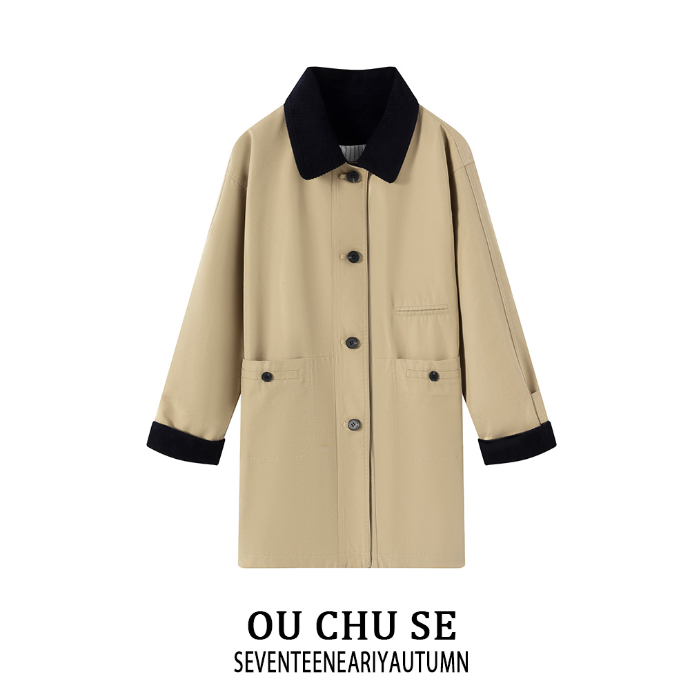 【现货现发】 拼接撞色风衣女中长款2025春季休闲宽松小个子外套