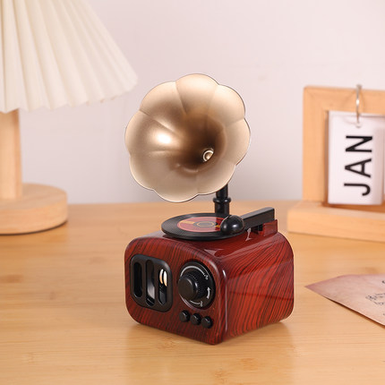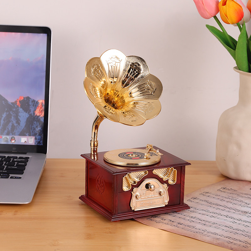 复古旋转音乐盒八音盒女生留声机生日礼物家居饰品唱片机模型摆件