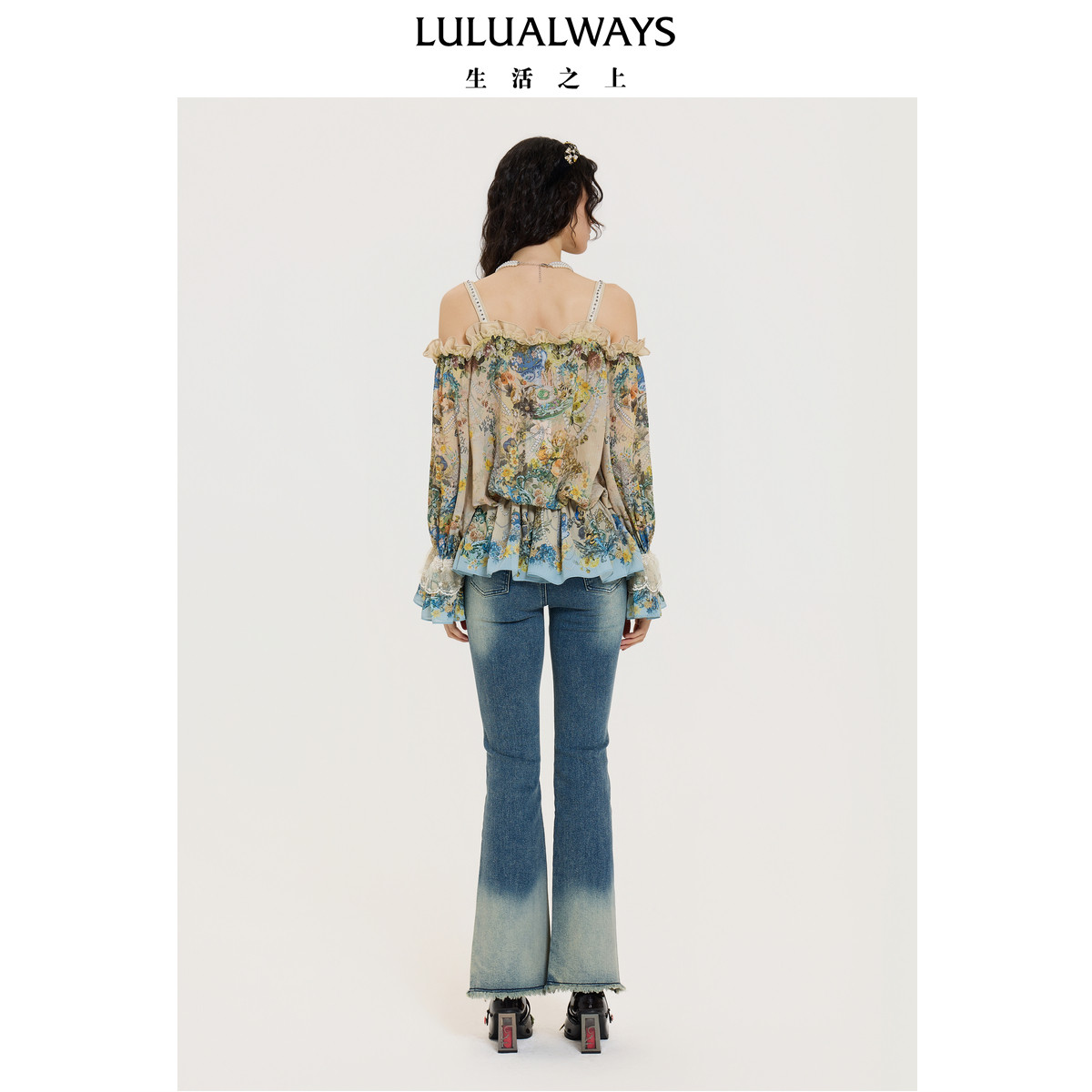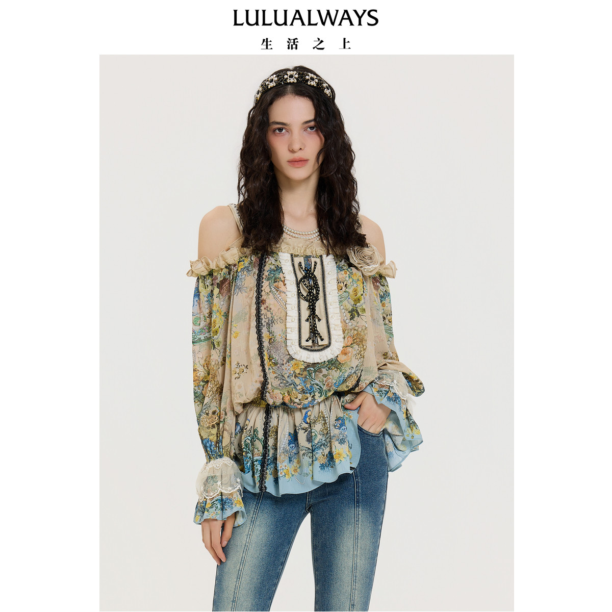 LULUALWAYS【商场同款】25秋季新款浪漫宽松露肩宽松上衣雪纺衬衫