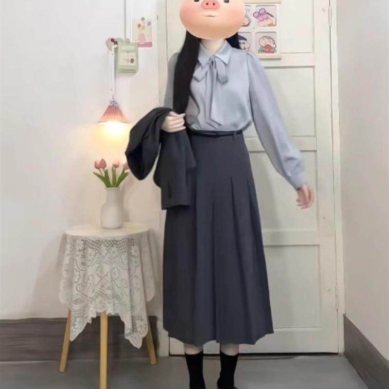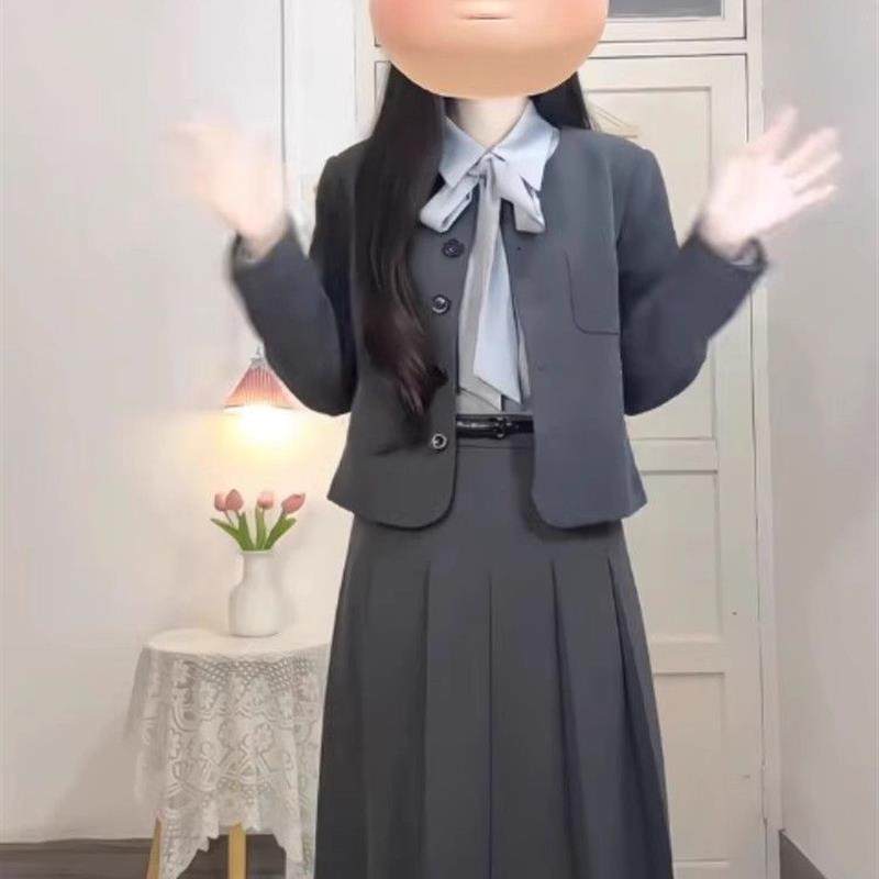 灰色西装套装女秋季新款小个子通勤面试正装休闲西服百褶裙两件套