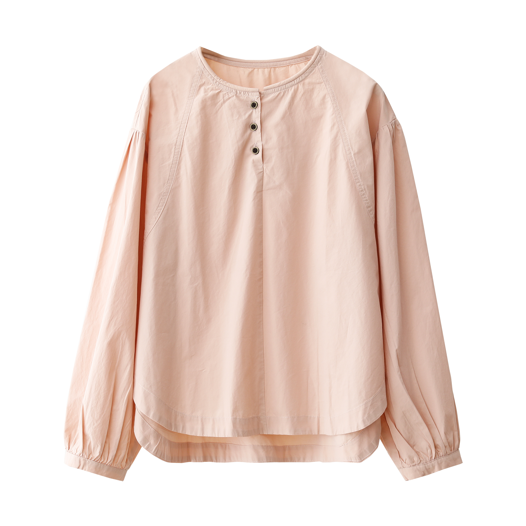 全棉三粒扣圆领长袖T恤休闲纯色