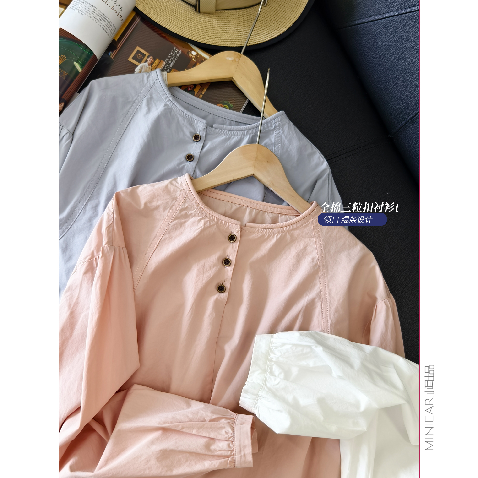 小耳出品 篙支全棉/重工绲条领/侧面来去缝+备扣 三粒扣长袖衬衫