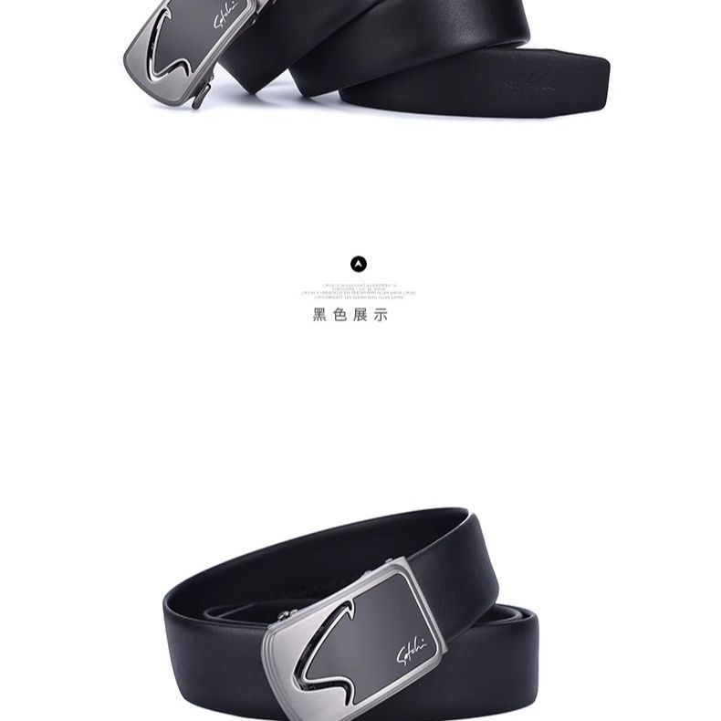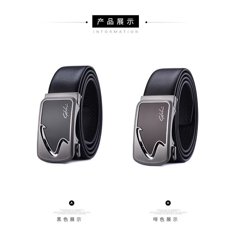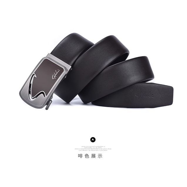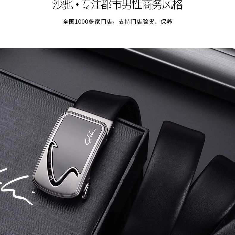 沙驰裤腰带头层牛皮自动扣皮带