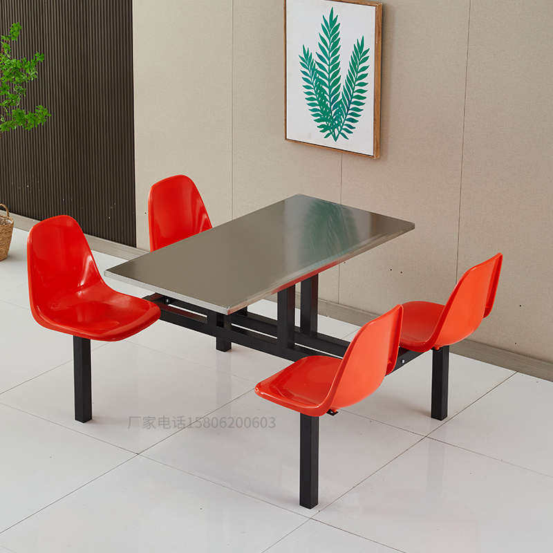 公司食堂餐桌椅不锈钢单位员工4人学校学生餐厅职工连体餐桌组合
