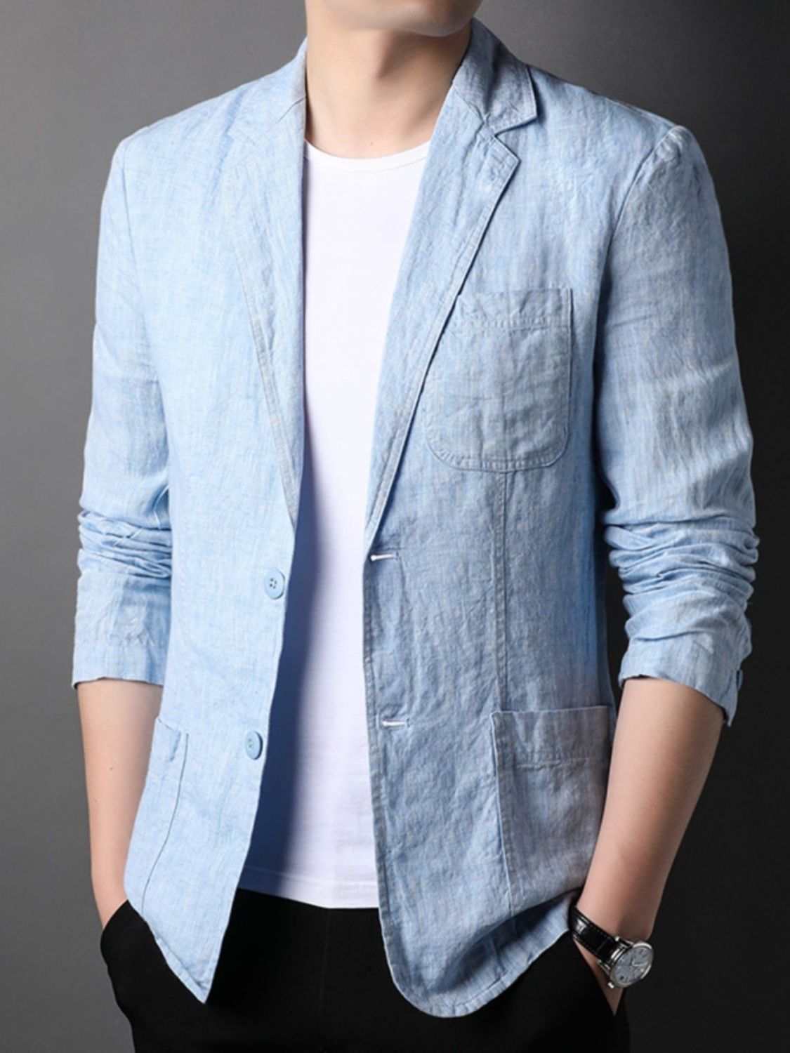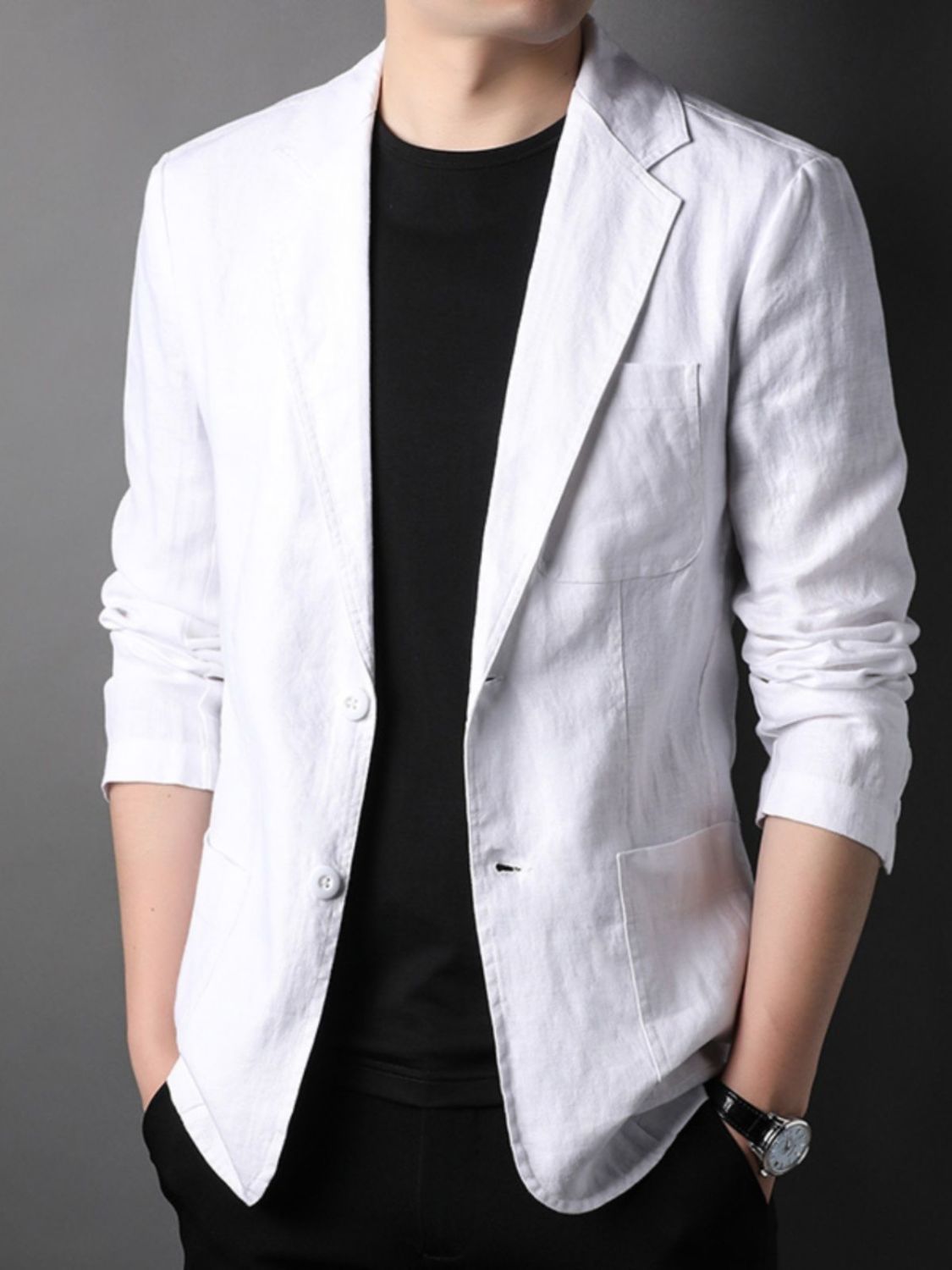 春夏季亚麻西服亚麻宽松加肥加大码西装男士休闲亚麻单西麻料外套