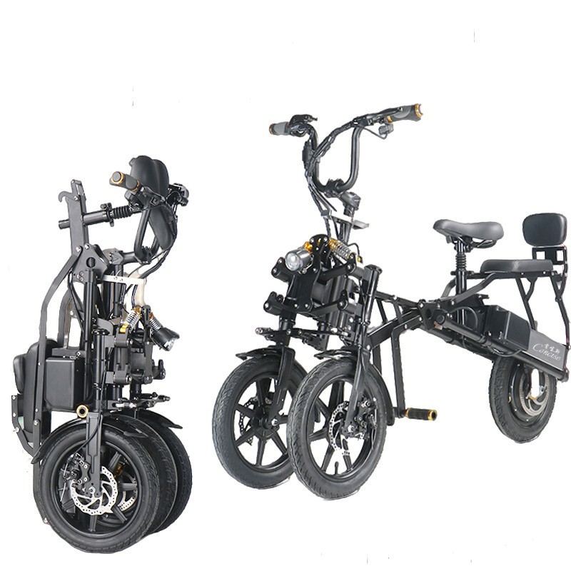 倒三轮电动车代步车亲子便携式接送小H孩不倒翁电动自行车折叠拉