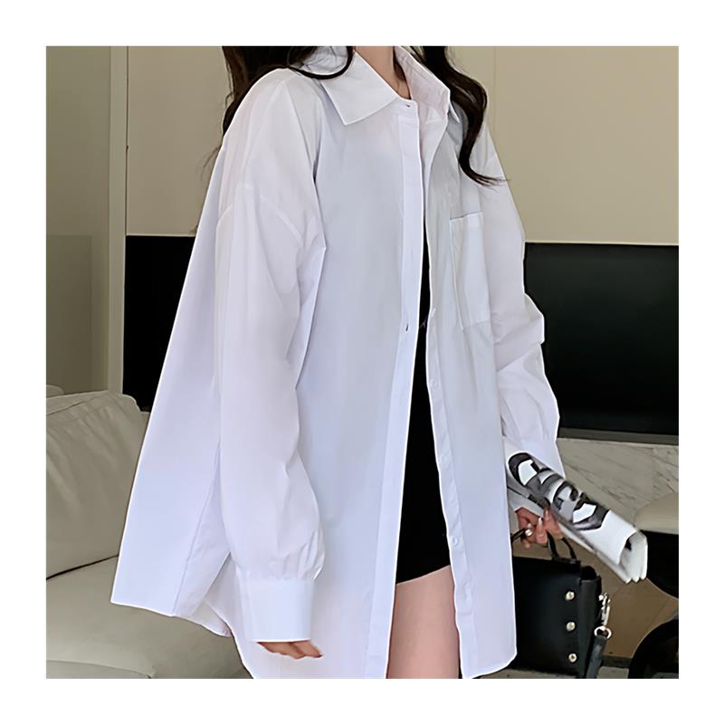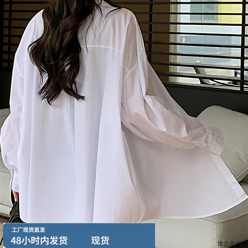 白色纯棉长袖衬衫女春秋新款慵懒风休闲宽松内搭衬衣外套