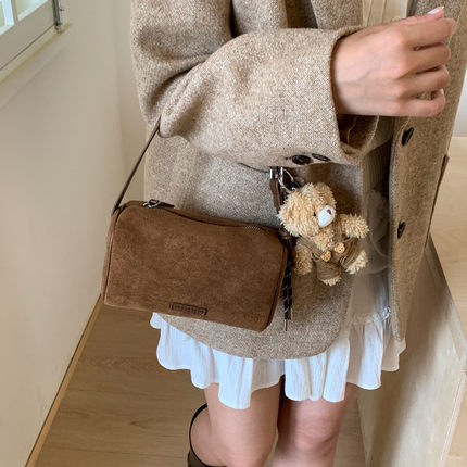 韩版磨砂波士顿包2025新款女式简约气质小众设计复古休闲斜挎包