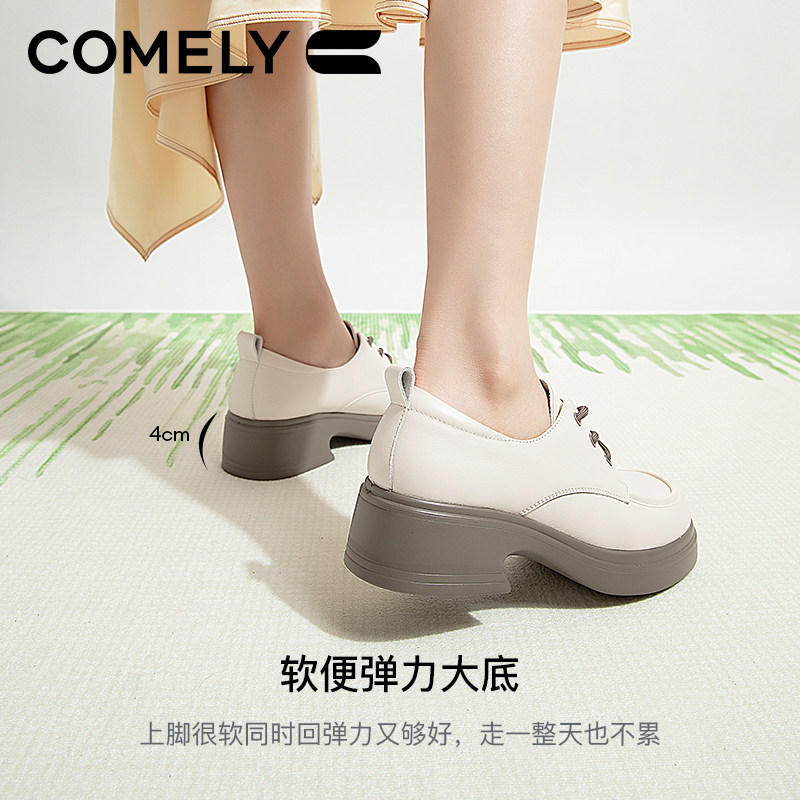 康莉真皮小皮鞋2024秋季新款复古英伦风厚底增高系带圆头休闲女鞋
