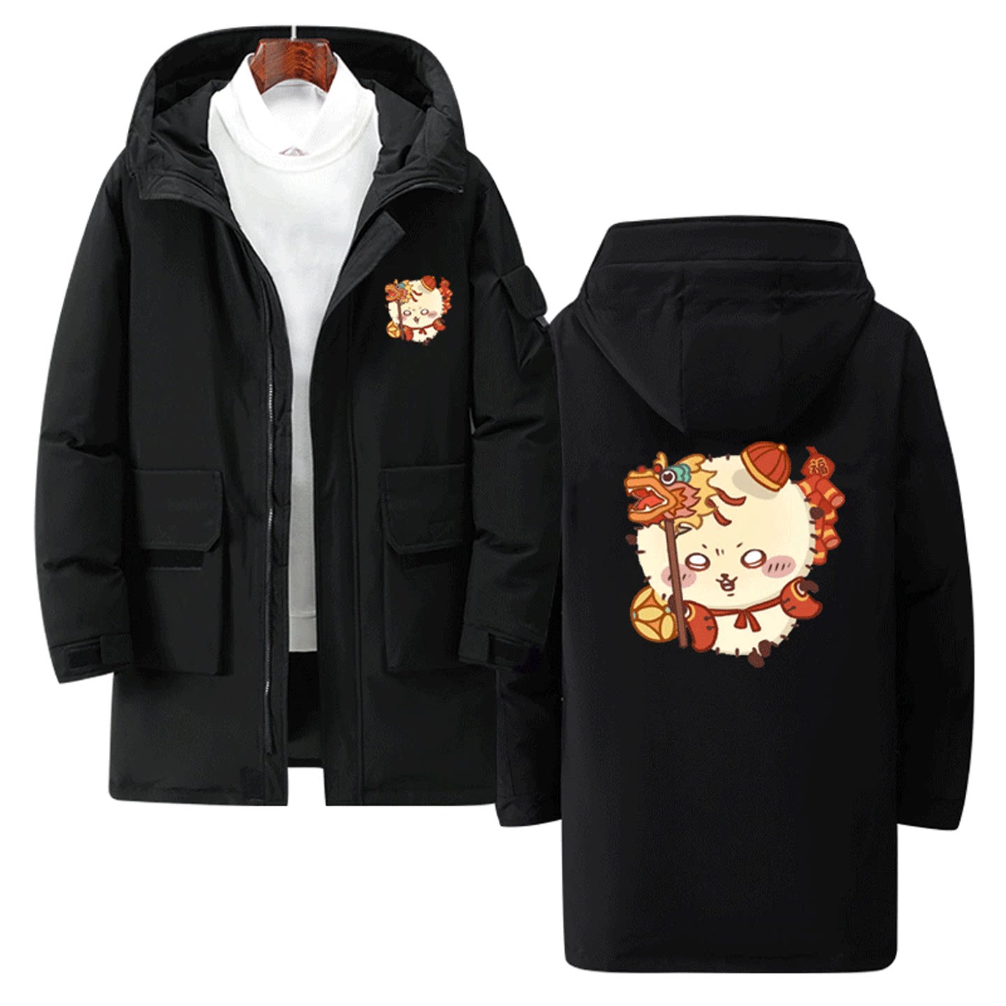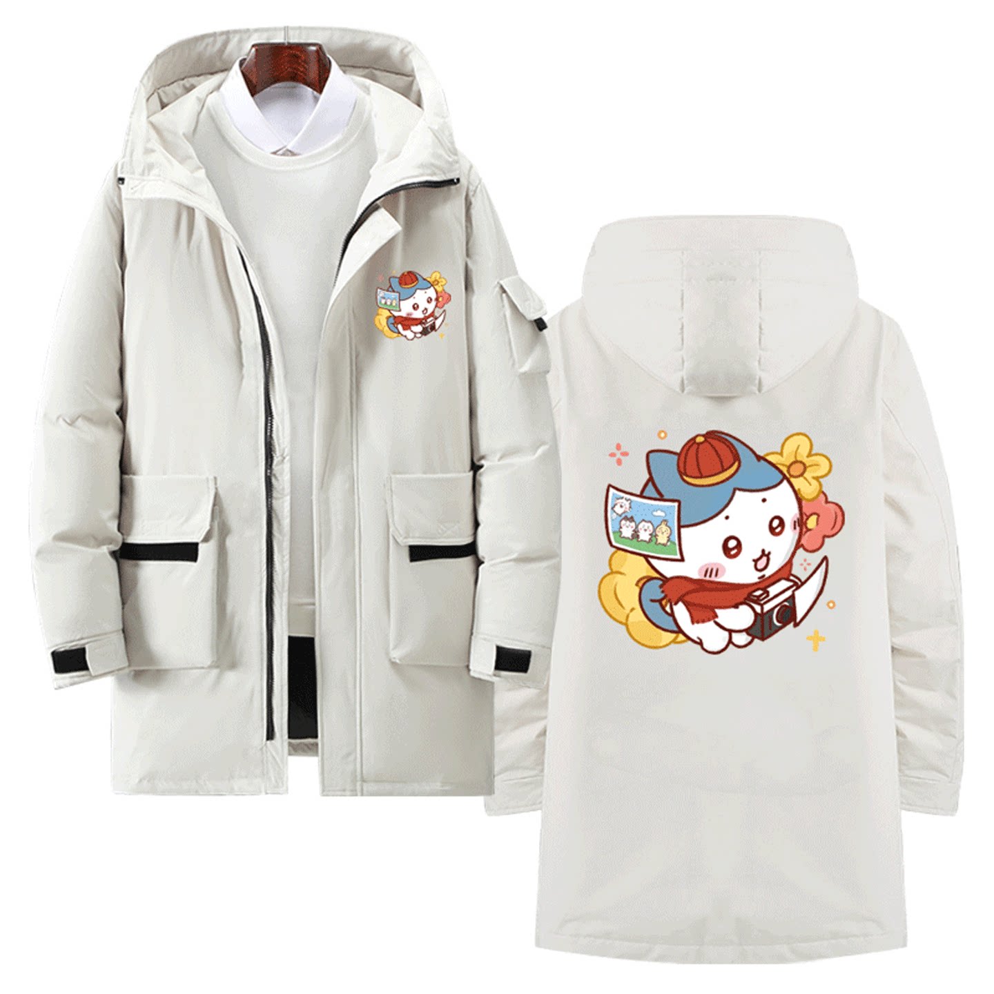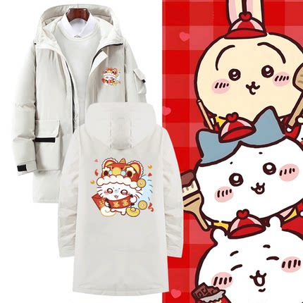 chiikawa秋冬季情侣可定制中长款羽绒服吉伊卡哇新年快乐周边男女