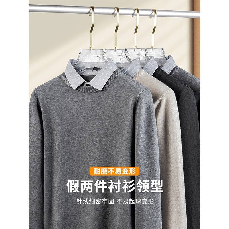 假两件毛衣男衬衫领潮流2025年新款春秋款休闲针织衫带领线衣AA06