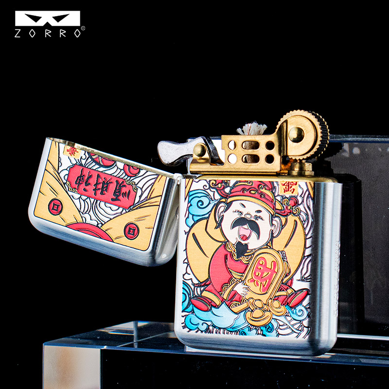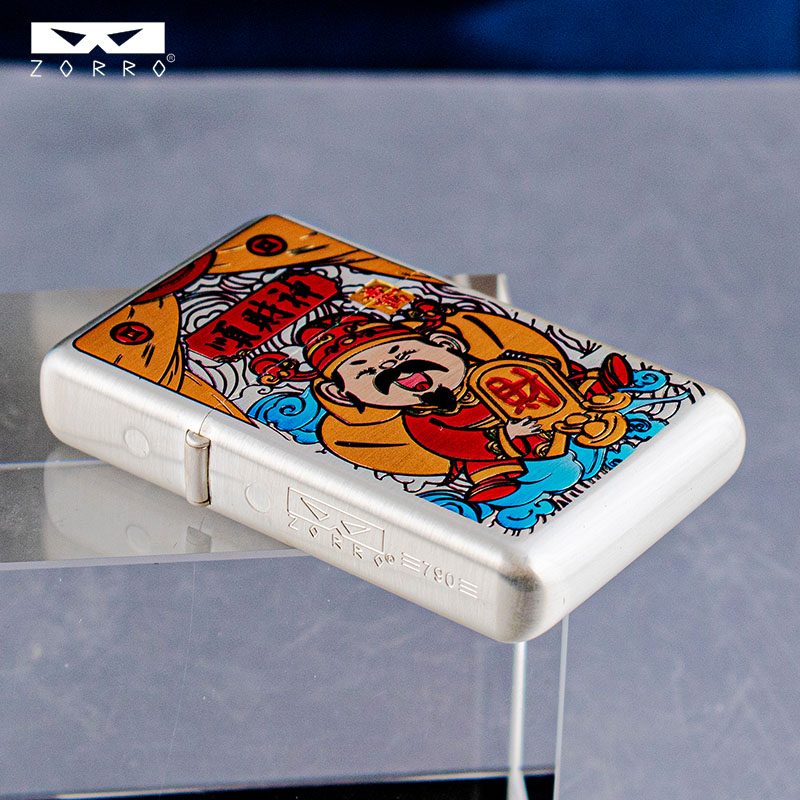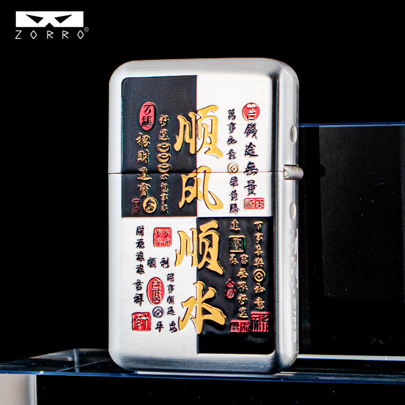 ZORRO佐罗三代打火机顺财神银拉丝煤油款新款790超薄手感机送男友