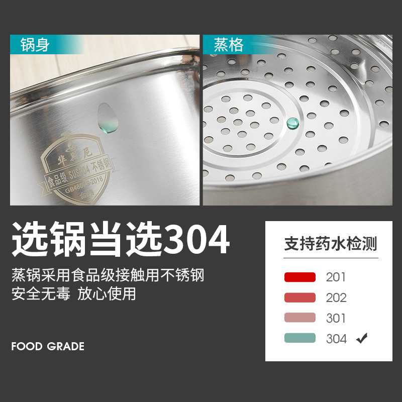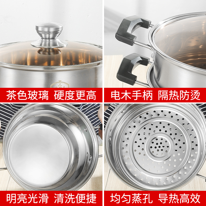 小蒸锅304不锈钢2双层复底加厚家用汤锅具三层电磁炉煤气灶用蒸笼
