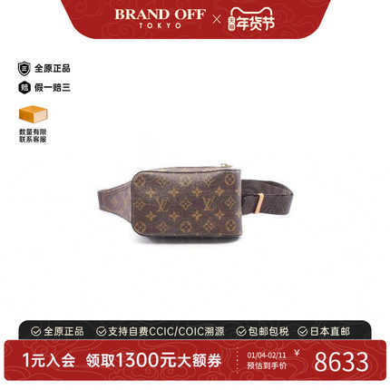 中古LV路易威登女包A级95新body bag随身包涂层/防水帆布腰包棕色