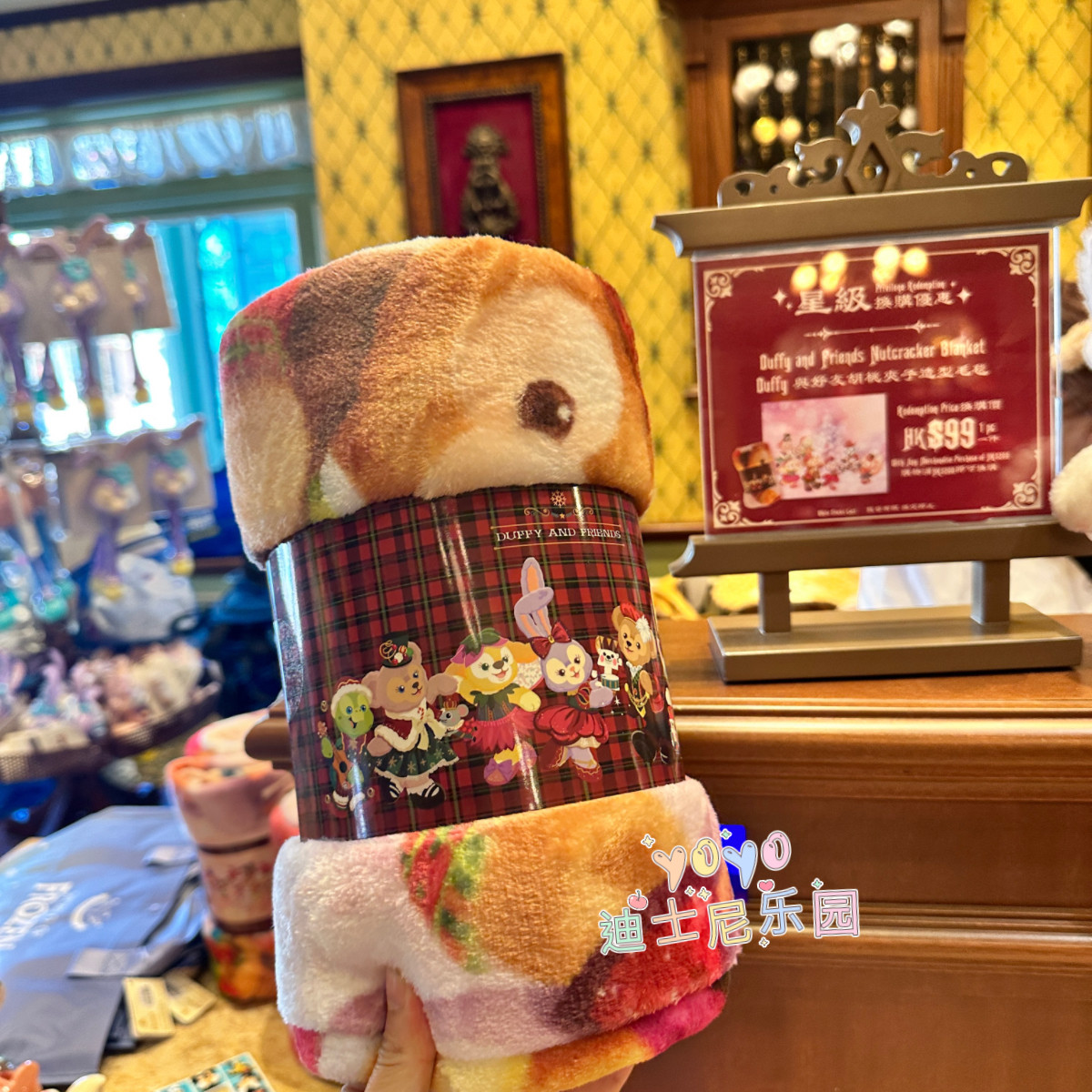 香港迪士尼乐园 2024圣诞节达菲熊雪莉玫饼饼卡通毛毯 被子