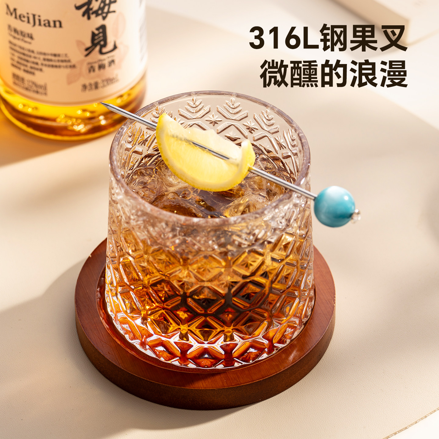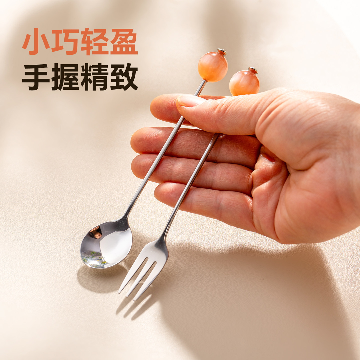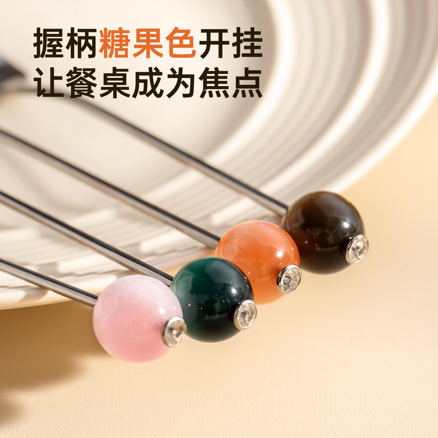 onlycook彩色珠子甜品勺304不锈钢小叉子水果叉咖啡搅拌勺水果针