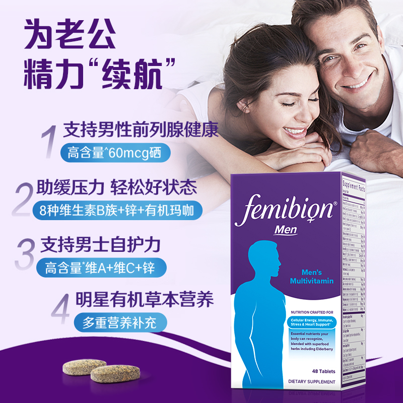 【直播更划算】femibion伊维安男士每日复合维生素备孕营养48片